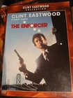 This DVD features the iconic Clint Eastwood as the Enforcer in the classic movie, Dirty Harry. Fans of the Western genre will love this DVD, which includes all the action and adventure of the original film. The story follows Eastwood's character as he enforces the law in a tough and dangerous world, using his wit and charm to win over the audience. The DVD is in the format of a disc and is categorized under movies and TV, DVDs and Blu-ray discs. The movie title is "The Enforcer" and the actor is Clint Eastwood. This DVD is a must-have for any fan of the Western genre or Clint Eastwood's work.