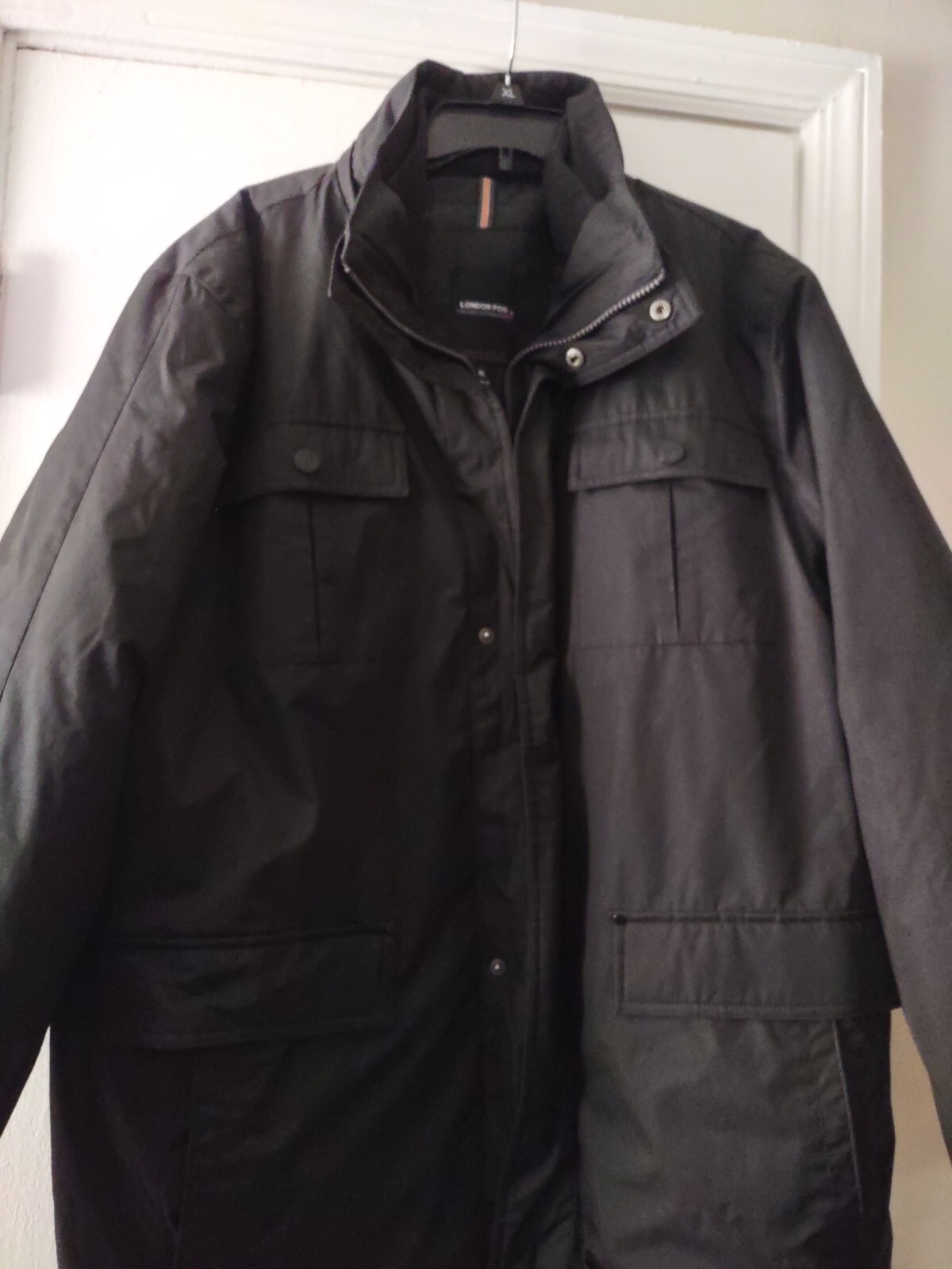 This London Fog jacket for men is a must-have for any fashion-conscious individual. It is made from high-quality polyester and features a solid pattern with a zip and snap closure. This jacket is perfect for casual, workwear, or business occasions, and is available in size XL and black color. The jacket is lined with polyester and has a softshell fabric type with accents of a zipper and logo. It also includes various features such as a collared neckline, packable design, bodywarmer, and pockets. This jacket is an ideal choice for the winter season and outdoor activities. Get your hands on this classic London Fog jacket today! 26 pit to pit x 32