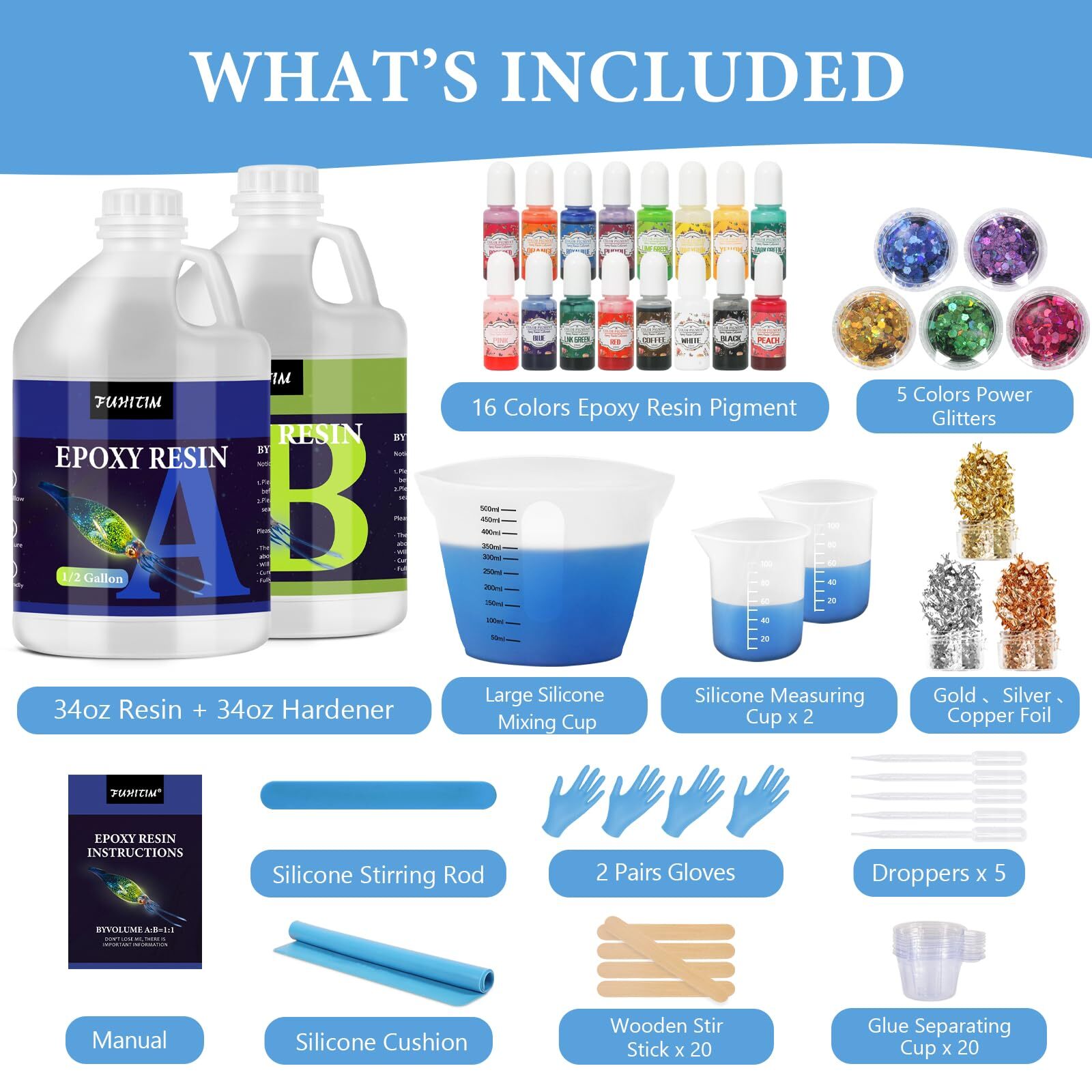 1 Gallon Crystal Clear Epoxy Resin Kit, High-Glossy& No Bubbles, Art & Casting Resin with 16 Epoxy Resin Pigment, Foil Flakes, Sequin,Craft Clear Resin for Art Crafts, Jewelry, Molds π[COMPLETE STARTER EPOXY RESIN KIT] 1Gallon epoxy resin kit comes with everything you need. 0.5 gallon resin and 0.5 gallon hardener, 1*500ml silicone stirring cup, 2*100 ml silicone graduated measuring cup, 1silicone pad, 1silicone stirring rod, 20 wooden stirrers, 5 Disposable dropper, 20 Disposable dispensing cup, 2 pairs of gloves, 5 boxes of colored sequins, 3 x gold foil flakes, 16 bottles pigment , and 1x user manual. π [EASY TO USE AND FAST CURING] Simply mix the resin and curing agent in a 1:1 volume ratio to start using. It has a 45 minute working time, making it perfect for beginners and allows time to mix bright colors for eye-catching creations. The easy to pour epoxy resin formula can self level and smooth. It will quickly solidify within 8-24 hours; Even if you haven't been exposed to it before, you can start quickly. π [SELF DEFOAMING] Our formula adds defoamer, which automatically releases trapped bubbles and has strong defoaming ability. It is recommended that each layer should not exceed 1/4 inch, which can be quickly and completely eliminated. To achieve perfect surface treatment in cold weather: preheat the resin and hardener before use. Our epoxy resin kit is safe, reliable, and non flammable. π [ULTRA HIGH GLOSS CRYSTAL TRANSPARENT EPOXY RESIN] This clear resin for craft can be mixed perfectly with any pigments and give the finished product a long-lasting, ultra-clear appearance without yellowing.Ideal for all casting, coating and art projects including jewelry, coasters,tumblers,countertops,table tops,resin art and acrylic pour paintings, molds, river tables. π[EASY TO MIX COLORS AND CREATE MORE] Epoxy resin is perfectly mixed with our colored pigments, foil powder, sequins, to create an outstanding color epoxy resin, achieving vivid and stunning effects. Don't limit your imagination, create works that you enjoy. If there are any issues (leakage, loss, usage issues), please feel free to contact us and we will provide a replacement or guarantee. Epoxy Resin Kit Shipping We offer FREE shipping on all orders! We ship within Three business days of payment, usually sooner. We use a selection of shipping services such as UPS, FedEx, USPS etc. We only ship to the lower 48 states, no APO/FPO addresses or PO Boxes allowed. Local pickups and combined shipping options are not provided at this time. Return You can return a product for up to 30 days from the date you purchased it. Any product you return must be in the same condition you received it and in the original packaging. Please keep the receipt. Payment We accept payment by any of the following methods: PayPal Please pay as soon as possible after winning an auction, as that will allow us to post your item to you sooner! Feedback Customer satisfaction is very important to us. If you have any problem with your order, please contact us and we will do our best to make you satisfied. Contact Us If you have any queries, please contact us via ebay. We usually respond within 24 hours on weekdays. Please visit our eBay store to check out other items for sale! Thank you for shopping at our store.