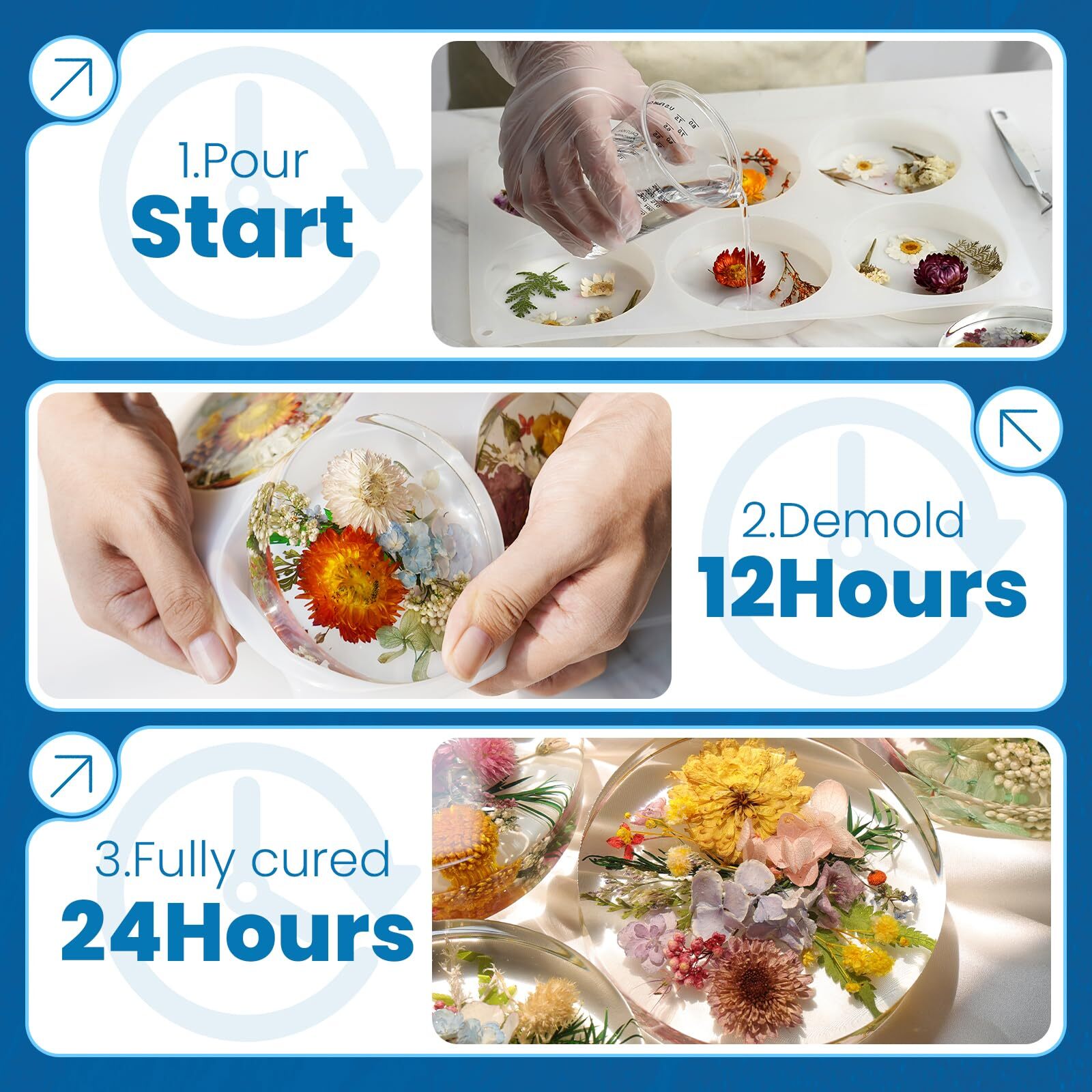 1 Gallon Epoxy Resin Kit with Color Pigment, Crystal Clear & No Bubble Epoxy Kit, Not Yellowing & Low Odor Casting Resin for Art, Craft, Jewelry, River Table All in One Set: Ideal for Resin Crafts. Includes 1/2 gallon each of resin and hardener, 50g of Ocean White Paste, 6 dyes and mica powders, and two pumps with accessories. With everything provided, you can freely unleash your creativity without any concern Bubble Free & Crystal Clear:Our epoxy resin has great self - defoaming. After stirring, let it stand for 3 to 5 minutes, and the bubbles will vanish. You'll get a glass - like, flawless item with a smooth surface and fine details Low Odor & Anti-Yellowing: During use, our resin epoxy kit only has a faint odor, never disturbing your work. Once curing, the final product is odorless. Above all, its anti - yellowing property keeps your creations vivid for much longer Easy to Use:Just follow 4 simple steps with our epoxy resin kit, and you'll achieve perfect results. It's ideal for various creative projects, such as jewelry, river tables, and coasters. Items crafted from this resin also make excellent holiday gifts Warm Tips:To avoid the problem of not-curing, please carefully read the manual before operation and conduct a small amount of testing first. In case of any problem, you can contact us at any time, and we will handle it immediately 1 Gallon Casting Epoxy Resin with Pumps, Crystal Clear Epoxy Resin Kit for Beginners, with Ocean White Paste, Color Pigment, for DIY Art, Craft,Jewelry,River Table Shipping We offer FREE shipping on all orders! We ship within Three business days of payment, usually sooner. We use a selection of shipping services such as UPS, FedEx, USPS etc. We only ship to the lower 48 states, no APO/FPO addresses or PO Boxes allowed. Local pickups and combined shipping options are not provided at this time. Return You can return a product for up to 30 days from the date you purchased it. Any product you return must be in the same condition you received it and in the original packaging. Please keep the receipt. Payment We accept payment by any of the following methods: PayPal Please pay as soon as possible after winning an auction, as that will allow us to post your item to you sooner! Feedback Customer satisfaction is very important to us. If you have any problem with your order, please contact us and we will do our best to make you satisfied. Contact Us If you have any queries, please contact us via ebay. We usually respond within 24 hours on weekdays. Please visit our eBay store to check out other items for sale! Thank you for shopping at our store.
