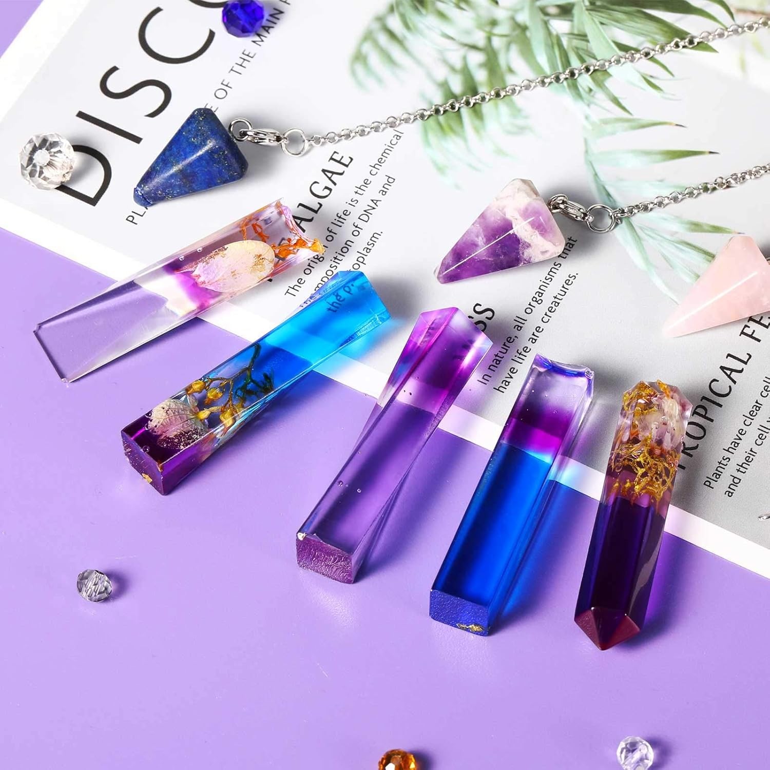 Free eBay listing template designed by dewiso.com 10 Styles Pendulum Resin Molds Silicone Pendant Molds Epoxy Quartz Crystal Gemstone Multi-Facet Jewelry Molds for DIY Crafts Jewelry Decorations Making FREE AND FAST SHIPPING! Resin pendant casting set: there are 10 different shapes and sizes crystal quartz resin pendant molds in our package, they are nice combination for resin charms making, you can make some considerate gifts for your friends or family Reliable to use: these resin jewelry molds are made of durable silicone material, very flexible and easy to clean for reusable; With nice elasticity, high tear strength, smooth and shiny interiors, ideal for your creation of pretty gems and realistic crystals, DIY your various styles of necklaces, bracelets, waist chains, pendants and so on, oven safe, temperature range: from -60℃ to 200℃ Compatible with most materials: especially ideal for epoxy resin, casting resin, polymer clay not for coating resin; These jewelry pendant molds have a variety of shapes and designs, add some resin pigment, resin dye, and embed different kinds of embellishments or fillers, just enjoy your DIY time with our resin pendant molds Simple to operate: after your project is fully cured, it will be easy to separate your resin mold, the finished products are very shiny and clear, reduce the need to cut back and polish; You just need to twist the silicone mold and release your creation out of your pendulum molds after the resin is completely cured Warm tips for storage and use: please store at room temperature place and avoid direct sunlight; Clean with soapy water; Please wait until your project is fully cured; Due to the thick material, strong toughness, and a small opening of the pendant mold, it may need a little force, so make sure the finished product is hard before demoulding Product We offer a 30-Day Return Policy on items which you are not completely satisfied with. You have the option for a full-refund or an exchange of the item. No returns are available on items shipped outside of the US . Shipping We offer Free Shipping to the US and ship within 2 business days of payment, usually sooner. We use UPS express shipping. That's why your products are usually delivered within 3 days . Contact We try our very best to make sure every customer is completely satisfied. If there's a problem , message us! We're happy to help. 24/7 live chat available.