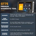 Why Should Buy The FOXWELL GT75 ? E/CU coding ,Online coding , offline coding : Re-refresh hidden functions to achieve personalization, match components after repair or replacement, and enhance vehicle performance. Bi-Directional Control Test & Active test 45+ maintenance functions , such as ABS bleeding, IMMO, injector coding, oil reset, EPB, oil reset, DIY mode, etc. OE-level complete system diagnosis AutoAuth for FCA SGW/FCA Guidance Function (for VW, Audi) ; Key Coding : FOXWELL GT75 can disable or clear info of the lost vehicle keys, add new keys for several car models; VAG Guided Functions : Provide step by step operation instruction to VAG cars. Flash Hidden Function for Audi, for VW, for Skoda Flash Hidden Function for Toyota Guided Function for for Audi, for VW(For Skoda models, it's being tested and expected to be released by the end of the year or early next year. For SEAT, the development will begin next year) Common Vehicle Models' Control Units Replacement (No need of programming or coding, For Hyundai Kia For Honda and other models' engine and anti-theft modules) 12pcs * OBD connectors & FCA AutoAuth 12+8 for Chrysler/ Dodge adapter connector AutoVin/code scanning and automatic scanning: Automatically retrieve the vehicle identification number for a comprehensive scan of all available systems for quick diagnosis. 109+ brand coverage and growth: Extensive vehicle coverage, more than 93 car brands, 10,000 cars, and still growing. Multi-language: English, German, Spanish, French, Italian, Japanese, Portuguese, Russian, Polish, Turkish, Dutch, Hungarian, Traditional Chinese.... Dual-band WIFI frequency : 2.4Ghz and 5Ghz WiFi can provide the best signal or connection speed. Bigger screen : 8-inch touch screen, 6000mAh/7.6V battery capacity, easy to interpret data and long battery life. Faster running speed: Android 10.0 operating system and Bluetooth 5.0 can run quickly and be easier to operate and share diagnostic reports. Large memory and lens : 2+32G memory and an 8-megapixel camera and endoscope allow you to diagnose the vehicle in all directions. 2 Years Free Updates + One key update online : Support one-click network uPADate, frequent uPADate to optimize software performance and increase more vehicle coverage. OE-LEVEL BI-DIRECTIONAL + ACTIVE TEST + SPECIAL FUNCTIONS AUTOMOTIVE DIAGNOSTIC SCANNER Foxwell GT75 Obd2 Scanner Code Reader comes with bi-directional control capability and is capable of performing Active Tests (functional tests) to access vehicle-specific subsystems and component tests. ACTIVE TEST(Bi-Directional Control)- Car scanner diagnostic tool Features Full bi-directional control ability, is mainly used to test whether the executive components in the electronic control system can work normally. For example : turn on the radiator fan, modulate the throttle, open/close windows, operate mirrors, Injector Buz Test, turn on interior & exterior lights, sound horn, test door lock actuators and such. Commonly used tests include: > EVAP Test > Cycling A/C Clutch On/ Off > Cycling ABS Pump Motor > Turn On/Off the Light > Turn On/Off the Sound Horn > Turn On/Off Radiator Fan > Modulate the Throttle > Open/Close Windows > Down/Left/Right/Up Mirror > Switch Fuel Injector On/Off > Injector Buzz Test (for Ford) .... MATCHING- This function matches and synchronizes the components with each module after you replace the module,such as: Gearbox Matching / Air Suspension Matching / Seat Matching / Head light Fitting / Door and Window Initialization Study / Sunroof Initialization / Injector Calibration / Multimedia Video Reset / Cluster Reset / Tire Change Reset...etc Before removing each control unit and component, the bi-directional control would be a better option to locate the problems. ECU Coding & Online Coding & Offline Coding 1️⃣Recode replaced ECU fit for BMW E/F chassis, to restore functional status. 2️⃣Quickly matching the replaced control units fit for Kia/Hyundai/Honda. 3️⃣Refresh hidden high-level functions, personalize vehicle performance fit for Audi/BMW/Bugatti/Bentley/Lamborghini/Lexus/Min/Seat/Skoda/Scion/Toyota/Hino/Volkswagen. 📧Please don't hesitate to reach us for the compatibility of ECU coding. DVANCED ECU CODING TO ENHANCE VEHICLE PERFORMANCE ECU Coding: ECU coding function allows you to flash the hidden features, or disable the annoying functions, and reprograms the adaptive data for certain components after repairs or replacements, which is one of the criteria by which a professional mechanic is judged, but it also adds value to your business. The ECU coding allows vehicles to stop being bound by OE settings. Tuning the ignition time, tuning the oil injection, adjusting the air intake, tuning the auto gearbox shift point, etc. If you are specialized in the car tuning industry, the ECU coding can be a great plus and give you an edge over peers! The Flash Hidden function allows you to customize some of the features on the vehicles such as one-touch signal flickers, deactivate some buzzing sounds, needle sweep (Only for VW), auto-hold, etc. Active Test: Active Tests, also known as Actuator Tests, are bi-directional diagnostic tests on vehicle systems and component. The tests let you to use the scanner temporarily activate or control a vehicle system or component, and when you exit the test, the system/component returns to normal operation. Some tests display a command to the operator. For example, if “Press Brake Pedal” displays, the operator has to press and hold the brake pedal and then continue. The sequence, number and type of tests are dictated by the control module. On some systems, the actuator tests cannot be restarted until the ignition key is switched off for some time. Alternatively, briefly start and run the engine, shut down, turn the ignition to the run position, then re-initiate the actuator tests. The tests activate a component, but they do not check if the component is working correctly. Make sure the components to be