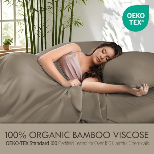 18-24 Inch Extra Deep Pocket Size Sheets Set, 100% Viscose Derived Queen Taupe