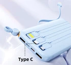 Product Specification [Battery Bank with Built in Cables] Battery bank has built in USB, USB Micro, USB C, and iPhone cables compatible with iPhone 14/13/12/11/XR/8/7, iPad, and Samsung Galaxy S20/S21/S22/S23, Tablet, and other android devices. The built in USB A input cable for recharge the power bank itself. No need to take any charging cables, perfect battery pack for travel [Charging 6 devices simultaneously] Portable charger with 6 outputs (3 cables and one USB A port two USB port), which can charing 6 devices simultaneously. With each port max 12V/1.5A output, you get simultaneous high-speed charging for your 6 devices Type C Input: 5V3A 9V2A 12V1.5A Mirco Input: 5V2A USB Input: 5V3A 9V2A 12V1.5A Lighting Output: 5V3A 9V2A 12V1.5A Type C Output: 5V3A 9V2A 12V1.5A USB Output: 5V3A 9V2A 12V1.5A Size: 140*70.8*20.3mm [Travel Essentials] 10000mAh Small & slim size power bank Comes with an adjustable strap cable design for easy carrying, free up your hands by hanging the power bank on a handbag or backpack. 10000mAh large capacity provides necessary backup power for smart devices, an essential item for travel. [Portable Charger with LED Display] The intellgence LED battery level indicator will accurate show you the remaining battery level clearly, no more guessing based on 3 or four little LEDs [Exclusive Technology] Built-in safeguards protect your devices against excessive current, overheating, and overcharging. Multi Protect safety system ensures complete protection for you and your devices. [What You Get] 10000mAh Power Bank x 1, User Manual x 1 If you are not satisfied with your purchase in any way. Please give us an opportunity to try and make it right, We believe that communication is the best way to solve problems. If you have any questions or need any help, please feel free to contact us We will try our best to make you satisfied
