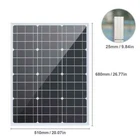 3000WProduct Description Widely used: Under 4 hours of full sunlight, the daily production capacity is 400wh/day. It is very suitable for RVs, caravans, oceans, camping vehicles, electric scooters, golf carts, power wheels, fishing motors, tool trailers, and backup power sources for small sheds. 【 Excellent Performance 】: Single crystal solar panels are made of corrosion-resistant aluminum frames, which can be used for more than ten years and can withstand strong winds (2400Pa) and snow loads (5400Pa). IP65 rated terminal box and 21% high battery efficiency. [Easy to install]: Pre drilled holes on the back and plug and play cables allow for quick installation 【 Multi protection 】: 20A PWM controller: built-in short circuit, open circuit, and overload protection to ensure safety. And it supports three types of batteries: lithium batteries, lead-acid batteries, and colloidal batteries. Technical parameters: Rated power: 100W Electromagnetic disc level: A Conversion rate: 21% Open circuit voltage (Voc): 21.6V Maximum line voltage (Vpm): 18V. Short circuit current (Isc): 6.17A Working current (Iop): 5.78A Output tolerance: ± 3% Temperature range: -40 ℃ to+80 ℃ Product size: 98 * 540 * 35mm Product Description 1000W2000WProduct Description Maximum power (max) 50W Maximum power supply voltage (Vmp) 18V Maximum power current (mp) 2.77A Battery efficiency 21% 36pcs of batteries Net weight: 3300g Gross weight: 3800g Product size: 680 * 510 * 25mm Packaging size: 690 * 520 * 30mm Output port: MC4 connector cable Features: 1. High efficiency 156 * 156mm monocrystalline silicon solar cells are selected, with power generation efficiency about 1.2 times that of conventional polycrystalline silicon, and the overall area is smaller under the same power. 2. The surface is made of tempered glass, which is more wear-resistant and improves the absorption efficiency of sunlight. 3. High light transmittance, safe and reliable, not afraid of high temperatures, without combustion or explosion hazards. 4. The junction box adopts P67 waterproof design, containing bypass diodes, and the circuit adopts overcharge and reverse current protection design. 5. Adopting photovoltaic dedicated cables and MC4 connectors, it is safe, waterproof, high-temperature resistant, and weather resistant for outdoor use. The MC4 connector is easy to use and plug and play. 6. This product is a solar module. It is recommended to use it in conjunction with the controller and battery. It can be used in various scenarios such as homes, camping, RVs, yachts, streetlights, solar power plants, etc.