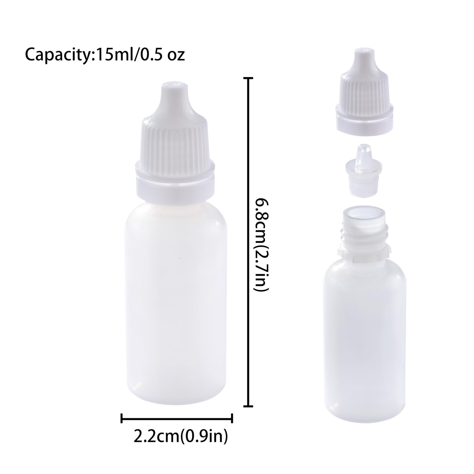 The plastic dropper bottle made from high-quality, BPA-free, soft plastic that is easy to squeeze yet strong enough to withstand repeated use. The translucent body allows you to monitor the liquid level, and the dropper tip enables controlled, precise dispensing with minimal waste Compact 15ml/0.5oz Size – Perfect for Travel & Daily Use: Each eye liquid dropper bottle holds 15ml (0.5oz) of liquid, the ideal volume for carrying just enough product without taking up space. Great for travel, daily skincare routines, essential oil blends, or DIY liquids Leak-Proof with Secure Cap & Inner Plug: The eye dropper bottle designed for protection. Each bottle features a screw-on ribbed cap for a secure grip and includes an inner dropper plug to prevent accidental leaks and spills. Whether you're storing eye drops or concentrated liquids, your contents stay safe, sealed, and fresh Flexible, Squeezable & Durable Plastic Construction: The plastic dropper bottle made from high-quality, BPA-free, soft plastic that is easy to squeeze yet strong enough to withstand repeated use. The translucent body allows you to monitor the liquid level, and the dropper tip enables controlled, precise dispensing with minimal waste 10 Color-Coded Caps for Easy Sorting: The mini dropper bottles set includes 10 bottles with brightly colored caps—red, yellow, blue, green, pink, brown, purple, and more—making it easy to organize and identify different contents at a glance. Perfect for labeling and separating different ingredients, flavors, or formulations Multi-Use Bottles for Home, Travel & DIY Projects: These mini refillable bottles are ideal for essential oils, food coloring, inks, fragrance oils, cosmetics, saline solutions, serums, and more. Great for home organization, traveling, crafts, laboratories, beauty professionals, and DIY enthusiasts