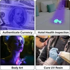 10Pcs UV 51 LED Flashlight Blacklight 395nM Inspection Lamp Pet Urine Detecter ‼️‼️【Note】 3*AA Batteries not included. Features: 1. Use 3 AA Standard Alkaline Battery (Not Included) , Rechargeable batteries are not recommended (Size and Voltage is not compatible)! 2. Ensuring that you have a sufficient quantity for your needs; Ideal to stock up or ideal as a gift for your loved ones, especially for those who enjoy outdoor pursuits or need a UV light for both personal and professional use. 3. Broad Coverage : emitting a strong light with a wavelength of 395 nm, larger area than 9, 21 LED lights. the UV resin flashlight can cover a large area without reduction in the intensity of light; Whether you are scanning for pet stains or exploring the natural world in darker places, you can rely on this flashlight to do the job right. 4. Material and Construction : made mainly with an aluminum alloy, the UV flashlight for resin is sturdy; The surface bears a wear resistant, non slip texture grip that is waterproof and dust resistant to ensure that it lasts longer; It's crafted in a black color, and its compact size of about 5.66 x 2.22 x 1.37 inches, to adds to its usefulness. 5. Portable and Convenient : the blacklight for cat urine detection is designed to fit easily into a pocket and comes with a wristband for secure and comfortable carrying; Being lightweight, it can also be stored safely in a bag or backpack, offering you convenience on the go. 6. Multipurpose UV Flashlight : this UV flashlight is not only a pet cleaning tool for detecting pet urine stains on rugs, carpets, and clothes, but it also serves as a black light detector for scorpions, minerals, bugs, stains and fake currency; Suitable for outdoor use and serves as a nice tool for identifying currency, ID cards and more. 7. Tips: the 51 UV light LEDs have a lifespan of 15 years,To extend the flashlight’s life, please remove all batteries if you did not intend to use it for a long time. 8. Improper use or installation of poor quality batteries may cause product hazards that can affect our safety. We recommend the use of reliable high quality Alkaline batteries. Use of rechargeable or other non-recommended batteries VOIDS the manufacturer warranties. Specification: Color: Black Material: Aluminum with O rings for water resistance Size: 5.7 cm x 14.5 cm (DxH) 5.66" inches long & 2.22" inches across lamp Bulb Type: 395-400nm Bulb Life: 100,000 Hours Power Output: 5W Battery Required: 3 x AA Alkaline Battery (Not Included). Battery Life: Approximately 20 hours on 3 AA batteries Switch Type: Click on / Click off Package include: 10 X UV Ultraviolet LED Flashlight Blacklight (without battery) On Jan 28, 2025 at 18:02:39 PST, seller added the following information: