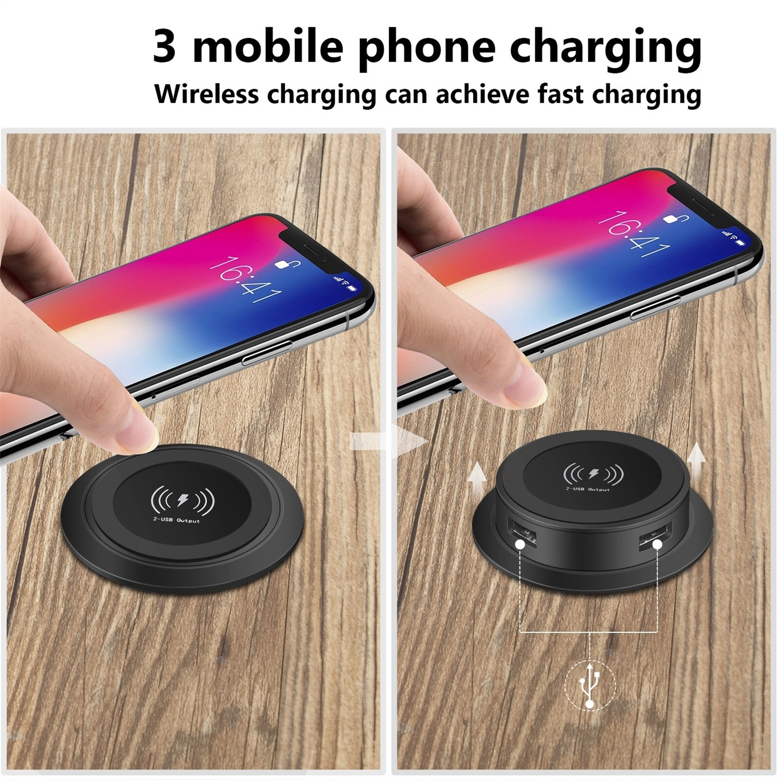 Product Description 10W Phone Desktop Wireless Charger Furniture USB Embedded Table Space Saving 3 In 1 Multi-functional Embedded Quick Charger USB Desktop Office Furniture Wireless Charger For Wireless Charging Phone Features: Wireless fast charger is an embedded design, which saves space and makes full use of the space of tables, tables and counters. Protection function: USB phone charger has over-current, over-heat, over-voltage and short-circuit protection devices, temperature control, foreign body detection functions. Use in various occasions: In addition to being installed on the table, the embedded desktop charger can also be used in different places like other chargers. 10W fast wireless charging. Wireless charger: This desktop wireless charger is a circular invisible mount transmitter. It is equipped with 2* 5V/1A charging function, ready to charge for your mobile phone. There is no plug when charging the mobile phone, which is more convenient and fast. Desktop manager: Use wireless charger without worrying about messy charging cables or USB ports, your desktop can be neatly organized. Specifications: Type: Wireless charger Material: ABS Item Color: Black Interface: USB Power supply: 12V2A(Not included 12V Power adapter) USB output: 5V1A Wireless output power: 10W Size: 7*7*5.2cm/2.75*2.75*2.04inch(L*W*H) Packing list: 1* Wireless charger If you have any questions, please feel free to contact us via ebay. We usually respond within 24 hours. Payment Shipping Returns Contact Us We accept all verified payments from ebay. Orders will be shipped after receiving cleared payment. Payment due within 7 days after auction ends and for buy it now listings. We ship most of our orders within 24 hours, and may up to 48 hours for. If you want faster shipping way. Please contact us before making payment. Sometimes due to problems with our transportation company system, your shipping information may be delayed to update. We recommend that you try again after 3-4 days. If you still haven't checked the shipping information, you can contact us by ebay message. Always believe we can figure things out with communication, if it comes to return, the pacakge must be intact and the same as you receive. If you have any questions, please feel free to email our service specialists 24 Hours a Day, 7 Days a Week. We will reply you ASAP. Return/refund is accepted within 30 days after the buyer receives the item. NO exchange will be accepted after 30 days from the date when the item is received. Please contact us first before returning your product!!! If you have any questions, our Customer Service staffs welcome you to email us. We strive to answer all questions and resolve any problems as quickly as possible. You can contact us 7*24, we will reply at the first time, and we will surely solve your problems. Note: 1.We try our best to reply to your emails as soon as possible, however, due to high volume of daily incoming emails and time zone difference, we may not be able to reply your emails immediately. Please allow 1 business days for us to response. If you do not receive any reply from us, please check your email ensuring your mailbox has not reached full size. 2.Due to some ISP SPAM filter settings, you may not be able to receive our replies; if you have problems receiving our emails, you may need to use a different email account to contact us. 3.Please give us the opportunity to resolve any problem. We understand the concerns and frustrations you might have, and will try our best to resolve the issues. Please email us before leaving any negative feedback or open any dispute on PayPal. 4.We care about our valued customers, and will always try to help you. So if you have any problems, please e-mail us immediately. Payment We accept all verified payments from ebay. Orders will be shipped after receiving cleared payment. Payment due within 7 days after auction ends and for buy it now listings. Shipping We ship most of our orders within 24 hours, and may up to 48 hours for. If you want faster shipping way. Please contact us before making payment. Sometimes due to problems with our transportation company system, your shipping information may be delayed to update. We recommend that you try again after 3-4 days. If you still haven't checked the shipping information, you can contact us by ebay message. Returns Always believe we can figure things out with communication, if it comes to return, the pacakge must be intact and the same as you receive. If you have any questions, please feel free to email our service specialists 24 Hours a Day, 7 Days a Week. We will reply you ASAP. Return/refund is accepted within 30 days after the buyer receives the item. NO exchange will be accepted after 30 days from the date when the item is received. Please contact us first before returning your product!!! Contact Us If you have any questions, our Customer Service staffs welcome you to email us. We strive to answer all questions and resolve any problems as quickly as possible. You can contact us 7*24, we will reply at the first time, and we will surely solve your problems. Note: 1.We try our best to reply to your emails as soon as possible, however, due to high volume of daily incoming emails and time zone difference, we may not be able to reply your emails immediately. Please allow 1 business days for us to response. If you do not receive any reply from us, please check your email ensuring your mailbox has not reached full size. 2.Due to some ISP SPAM filter settings, you may not be able to receive our replies; if you have problems receiving our emails, you may need to use a different email account to contact us. 3.Please give us the opportunity to resolve any problem. We understand the concerns and frustrations you might have, and will try our best to resolve the issues. Please email us before leaving any negative feedback or open any dispute on PayPal. 4.We care about our valued customers, and will always try to help you. So if y