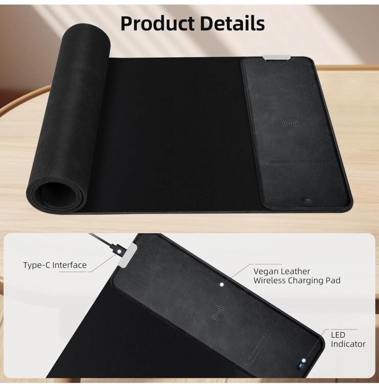 Enhance your gaming experience with this wireless charging mouse and phone pad. The 10W charging pad is designed with vegan leather fabric and rubber material that provides a comfortable and stable surface for your mouse and phone. Measuring 31.5 inches in length and 11.8 inches in width, the mouse pad is waterproof and offers a non-slip grip rubber base ensuring precise movements during intense gaming sessions. This mouse pad and charging pad combo is perfect for gamers who want a convenient and functional accessory for their desktop setup. The plain black design with gaming features makes it a stylish addition to any gaming setup. Made in China, this mouse pad and charging pad combo is a great choice for those who value quality and functionality. Free Shipping