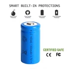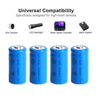 Features ▸100% brand new and high quality, safe and environmental friendly. ▸The product is resistant to high and low temperature, wider range of applications, safe and durable, long shelf life ▸High capacity ensures extended battery life and normal use in good overall condition ▸Long-lasting power, selected materials, improved purity and utilization of electrolyte, higher battery capacity and longer service time ▸Strong current, stable current and long-lasting discharge. It can effectively protect household appliances with stronger resistance to high and low temperatures (-40°C-70°C) and still work normally at low temperatures. ▸Suitable for cameras, digital cameras, video cameras, night vision devices, LED flashlights, electronic patrol sticks, LED monitors, LED desk lamps, intelligent instruments, IC card water meters, gas meters, electric meters, Walkman, CD players, electric razors, electric toys, wireless microphones, calculators, smoke alarms, sanitary ware sensors,,, electronic doorbells MP3, electronic toys and other electronic products. Specifications Trade name: lithium battery Battery model: 16340 Battery capacity: 1300mah Rated voltage: 3.7V Charging times: 500 Product size: 34mm * 16mm (approx.) Product weight: 15g (approx.) Color: blue