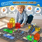 This is a luxurious set of road magnetic tiles, containing a wealth of road elements, so that kids can build houses, roads, trees, bridges and other buildings, not only to bring toddlers happy construction time, but also to develop toddlers' creativity and imagination, is a great set of construction toys! What Makes It Unique - This is a deluxe magnetic tiles road set of 112 pieces, including a variety of personalized components, there are 50 classic magnetic tiles, 38 magnetic road tiles, 8 window tiles, 4 seawater magnet tiles, 4 vehicles tiles, 4 traffic signs tiles, 2 parking spaces tiles, 2 magnet figures tiles. Learning Through Play - Combine learning with our magnetic tiles! The magnetic tiles road set allows kids to stimulate their curiosity and imagination in the process of creating and building city roads, cultivating their STEM skills and hand-eye collaboration, from spatial awareness to the development of problem solving skills, and it is a great set of toys for toddlers to learn while playing! Safety and Durability - Safety is our top priority, and our magnetic tiles are made of safe and durable food-grade ABS plastic with smooth surfaces and rounded edges to protect small hands from scratches. Make sure parents don't worry and kids have plenty of play! Always Compatible - magnetic tiles road set are designed with standard size make it compatible with major brands in markets. Making it a perfect addition to any magnetic tiles collection, allowing for endless play possibilities and expanding kids' collection and providing hours of gaming entertainment. Suitable for All Ages - This magnetic tiles road set offers a wonderful experience for kids of all ages, making it the perfect choice for fun games, early education, family bonding and outdoor play activities. Whether it's a birthday, Christmas, school classroom, and any other special occasion, this is a beloved gift for 3+ years old boys & girls.