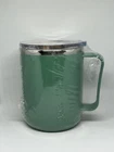This 12 oz reusable insulated coffee mug is perfect for those who love to travel and enjoy their hot or cold beverages on the go. The mug is made of durable stainless steel and comes with a slide lock lid and a handle for easy carrying. The insulated feature keeps your drink at the perfect temperature for hours, and the solid green color adds a modern touch to your style. The mug has a capacity of 12 fluid ounces and measures 4-1/4 inches in height and 3-1/8 inches in width. Brand new sealed in package-the packing on the handle has opened-see photos! Thank you for stopping by!