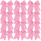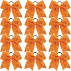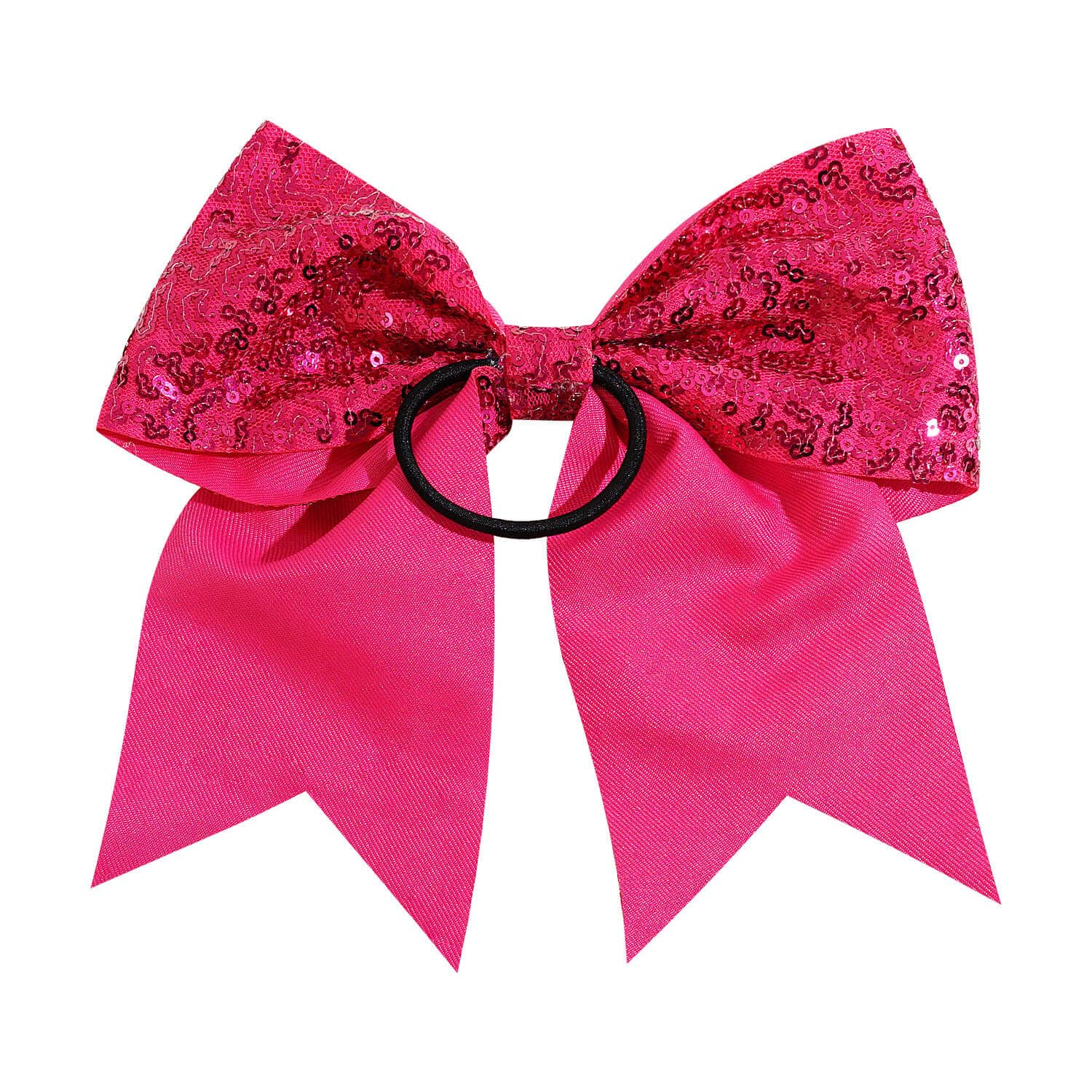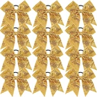Package include: 12 pieces gold hair bows ties, each bow measures 18 cm/ 7 inch in length; Cute and fashionable hair accessory for girls and ladies to wear. Stretchy and stable: the cheer hair bows are made of a 3-inch wide sequin ribbon with a sturdy elastic rubber hair band, covered with fabric to prevent damage, can hold your hair firmly in place. Easy and comfortable to wear: the back of the cheerleading bow is designed with a durable elastic band that fits easily; And you don't have to worry about losing accessories, the sporty bow has good adhesion and won't get stuck or tangled on your hair, giing you a comfortable wear feeling. Match many outfits: the jumbo cheer hair bows are great for team cheer competitions, tournaments, photography, party, festival or any other special events; Also great for everyday use, wear them to school, pair them with dresses, jeans and T-shirts, backpacks and lockers decoration, Christmas tree ornament, etc. Great for school spirit: the school spirit shines bright with these ponytail bows, they can be easily attached to a ponytail with a wrapped elastic hair tie, allowing you to jump and cheer to your heart's content without fear of losing your bow; A great option for cheer camp, practice, or every day use. These shiny hair scrunchies is fashionable, durable,elastic comfortable, can match for show, gym dance,party,scrunchies, make you charming, perfect gift for youself or your friends and families. Specifications: Material: Shiny fabric and durable elastic band 12 Pcs fashion style hair ties