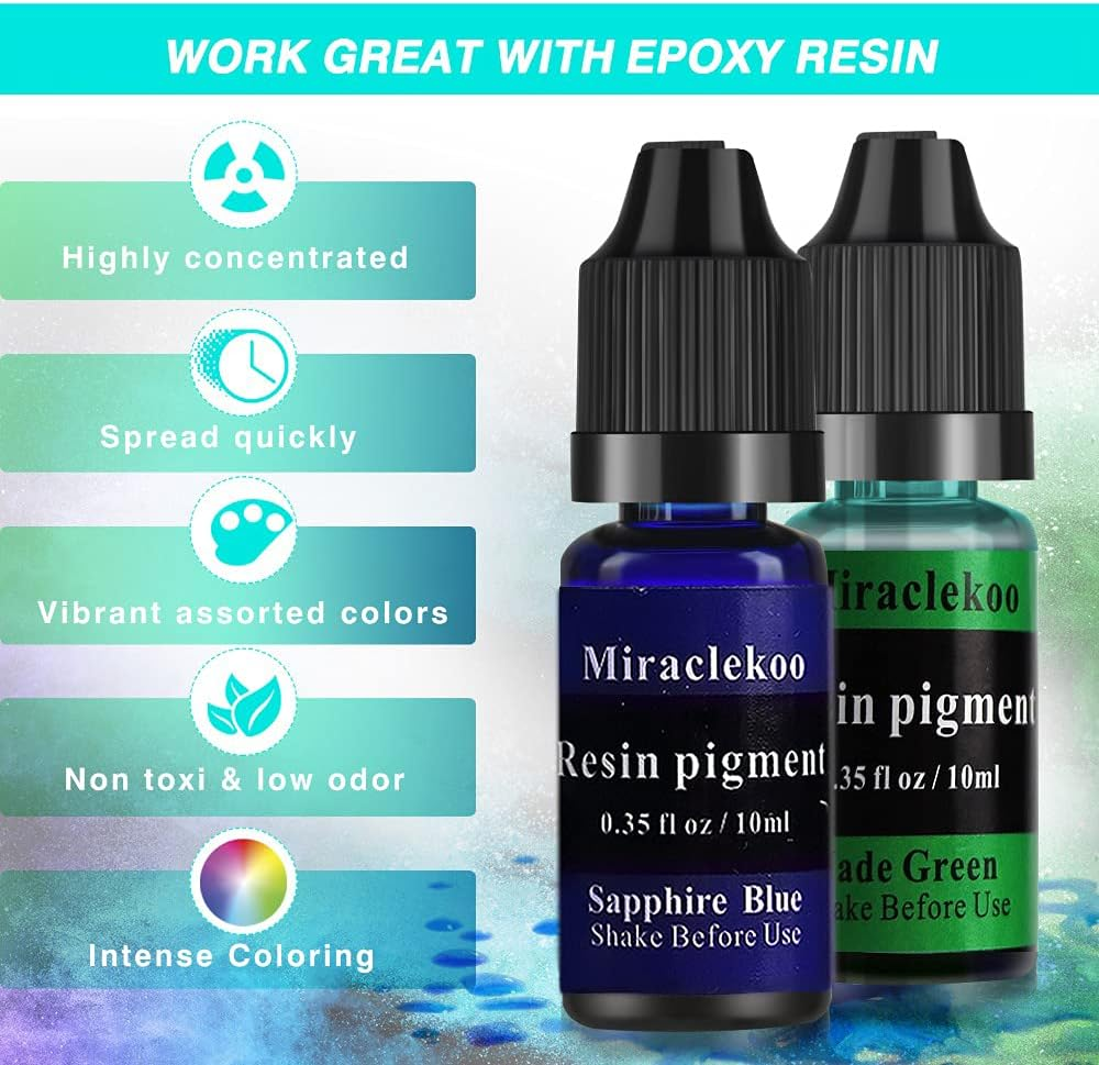 Store New Arrivals Add to Favorite View Feedback Contact 12 Colors Epoxy Resin Color Dye Colorant Liquid Epoxy Resin Pigment,10Ml Each,Translucent Description Item model number 12CEURCDCLP-1 Number of Items 1 Compatible Material resin Color 12 Colors Vivid Brand Miraclekoo Country of Origin China Item Weight 0.35 Ounces Item Form Liquid Product Dimensions 1.57 x 1.57 x 4.72 inches Manufacturer Miraclekoo technology Co., Ltd. HIGH QUALITY – This epoxy resin dye is made of high quality material,non-toxic and non-radioactive.Safe for the environment and you RESIN PIGMENT – This epoxy resin dye kit can be used when working with resin and a little goes a long way.Note:the white one will sink to the bottom,please shake it before use VARIED COLOR AND CAN BE MIXED – This is a resin pigment in the form of liquid. You can mix it with another pigments to achieve the desired color PERFECT FOR ALL CRAFTS AND ARTS – They can be widely used on crafts decorations, nail art, jewelry making, garment accessories, or other DIY making BEAUTIFUL COLORS – White,Black,Sky Blue,Sapphire Blue,Yellow,Orange,Grass Green, Bright green, Orange Red,Red, Pink,Purple Product Description Specification: High-quality Brand new Material: Pigment Color: 12 colors Volume: 10 ML Oily pigment This is a resin pigment in the form of liquid,it is oily. VARIED COLOR AND CAN BE MIXED – This is a resin pigment in the form of liquid. You can mix it with another pigments to achieve the desired color. HIGH CONCENTRATED A little drop can go a long way! TRANSLUCENT&VIVID The range of different colors is great for mixing and creating just about every color you can think of! MIX WELL WITH RESIN Our resin dye mixes wonderfully with epoxy resin ABOUT US We offer the best prices around on high quality products. Our E-store includes media such as books, movies, music and games while offering electronics, toys, sporting apparel, clothing, tools, general home, garden items and more. SHIPPING We are always working hard to ensure your package arrives as soon as possible. Please understand that some factors like weather, high postal traffic, and the performance of shipping companies are outside of our control. We offer free shipping to the lower 48 states and ship within 2 business days of payment, usually sooner. We do not accept P.O. Boxes. Please provide a physical address. RETURNS We offer a 30-Day Return Policy on items which you are not completely satisfied with. You have the option for a full-refund or an exchange of the item. No returns are available on items shipped outside of the USA. PAYMENT We accept PayPal. CONTACT US This page content is yet to come Please ad us to your favorite seller and visit again later Thank You CUSTOMER SATISFACTION We try our very best to make sure every customer is completely satisfied. If there's a problem, message us! We're happy to help.