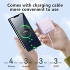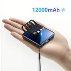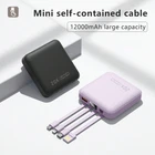 [No data cable required]The portable charger has 4 built-in data cables: 1*USB-A data cable, 1*Micro USB data cable, 1*LT data cable, 1*Type-C data cable. 2 output ports: 1 * Type-C port, 1 * Micro USB port. It can charge up to 5 devices. You can use this portable charger to charge your mobile phone anytime, anywhere, without the need to prepare a charging cable, which solves the problem of multi-wire entanglement. [Super Mini]One of the smallest and lightest 12000mAh portable charger. You can put in your pocket, clutch bag or purse handbag easily.Compact design and rounded corners that make them comfortable in the pocket or in the hand. [Intellgence LED display]The intellgence LED battery level indicator show you the remaining battery level.No more guessing whether need to charge it or not. [Smart Security Protection]The mobile power bank has a built-in full smart chip security system and a UL-certified lithium-ion battery to provide security protection for you and your equipment. Support over power, over voltage, over charge, short circuit protection and automatic power off. [Services and products you will get]12-month warranty, 24-hour online after-sales service, and friendly replacement policy. Any related issues are covered by a friendly replacement or money-back guarantee, and 24-hour online after-sales service is supported. Product list: 1*12000mAh mobile power bank, 1*Type-C cable, 1* lanyard, 1* user manual.