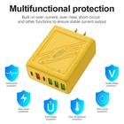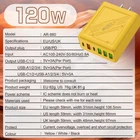 Description: 1. Fully charged, safe to use, with overcharge, overcurrent and overheating protection. 2. Flame retardant material, providing excellent service for you and your devices. 3. Safety: This USB charger adopts shell design, which is not easy to be damaged. 4. Convenient for travel: With global voltage compatibility, compact and portable design, you can charge anywhere. Specifications: Type: Charger Power: 120W Color: Yellow Charger plug: US plug, Warning: This product has 6 plugs with a total power of 120W. When multiple plugs are charged at the same time, the charging speed will be the same as that of a normal charger. If you encounter any problems during purchase or use, please feel free to contact us.
