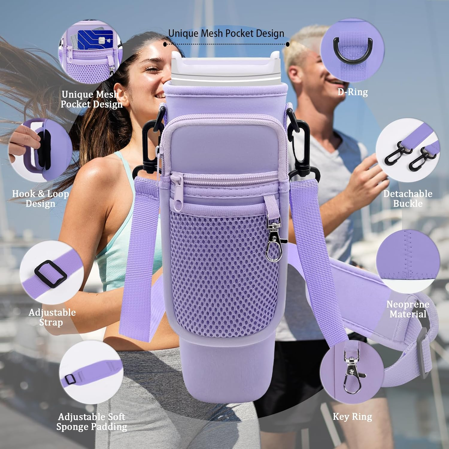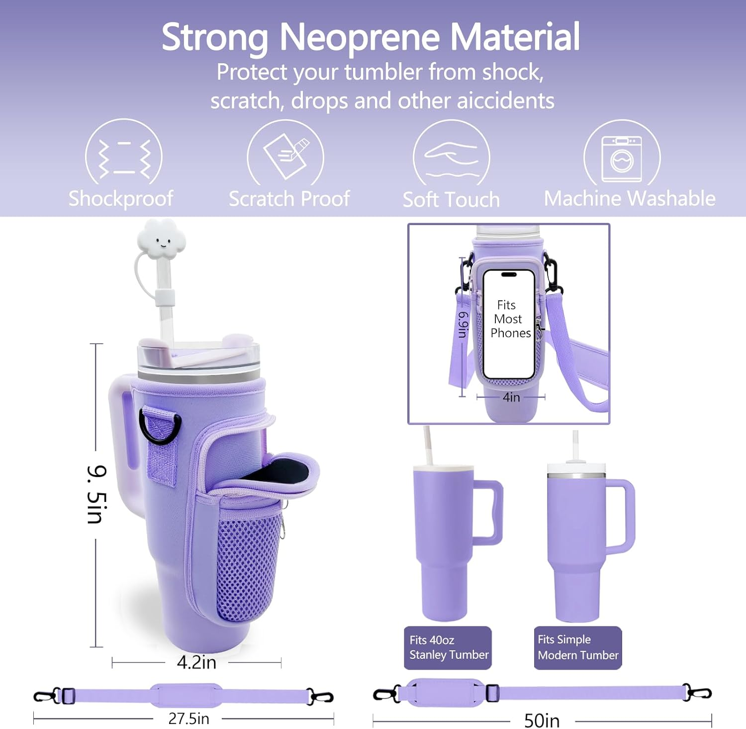 【Upgrade Cup Sleeve】New mesh pocket designs that provide plenty of room for all your personal belongings such as cellphones,cash,cards,keys,etc. And comes with removable and adjustable strap to suit all body types. ——One Set for all you need. Take your cup everywhere and free your hands. 【Cute Straws Covers】Made from food-grade silicone; Reusable & dishwasher safe. Fit straws with an outer diameter of 0.4in. A Cute decoration to remind you to drink more water. 【Drinking Straw & Cleaning Brush】The straw measures 12.5 x 0.4 in. And the brush is long enough to clean the straw easily. 【Protective Silicone Boot】 2.95x1.8in. Premium protector to fit bottles or tumblers with 2.8-2.95 in base. No need to worry about the bottom of the cup getting scratched; dented or making noise. Keep your cup in perfect condition. 【Anti Leak Stoppers】Available for Stanley H2.0 only. Perfect complement to your water bottle. They seal the cup and holds the straw in place. They are spill proof; stop gas loss and keep cold or hot drink longer. 【Wide Application and Perfect Gift】 This beautiful water bottle cover for stanley 40 oz tumbler is perfect for walking, biking, camping, hiking, back to school, commuting, or even if you're at the beach, gym, or sporting events. The tumbler pouch's versatile design makes it suitable for various sports and outdoor activities. And the water bottle holder with strap is a perfect gift for Stanley fans and a good gift for Halloween, Thanksgiving Day, Christmas Day, New Year's Day, Valentine's Day, Mother's Day and Father's Day. Product Description JMY 12 Packs Stanley Cup Accessories Add to Cart Add to Cart Add to Cart Add to Cart Add to Cart Add to Cart Customer Reviews 4.6 out of 5 stars 121 4.6 out of 5 stars 121 4.6 out of 5 stars 121 4.6 out of 5 stars 121 4.6 out of 5 stars 121 4.6 out of 5 stars 121 Price $19.99 $ 19 . 99 $19.99 $ 19 . 99 $19.99 $ 19 . 99 $19.99 $ 19 . 99 $19.99 $ 19 . 99 $19.99 $ 19 . 99 Dishwasher Safe ✔ ✔ ✔ ✔ ✔ ✔ Reusable ✔ ✔ ✔ ✔ ✔ ✔ Food-grade Material ✔ ✔ ✔ ✔ ✔ ✔ Scratch Proof ✔ ✔ ✔ ✔ ✔ ✔ Size 30/40OZ 30/40OZ 30/40OZ 30/40OZ 30/40OZ 30/40OZ
