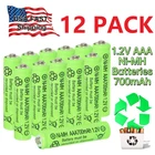 12Pcs Ni-MH Rechargeable AAA Battery 1.2v 700mAh for Solar Lights & Flashlight Warm Tips: Before use, please remove the plastic packaging film of the battery. Features: ❤1. Widely use: Our AAA batteries rechargeable is perfect used for solar powered garden lights, landscaping lights, lawn lights, etc. replace all alkaline disposable batteries that power your TV remotes, wireless mouse and keyboards, gaming controllers, RC remotes and others. ❤2. Easy to install and use: Remember to Keep your solar light switch on,Simply install the AAA Ni-MH batteriy in your solar lights and allow sunny day for recharging.Triple a solar batteries for outdoor solar lights can be charged via solar cell lights or standard charging units. ❤3. The 1.2v Ni-MH rechargeable batteries can be charged up to 500 times, save money from buying huge of one-time used batteries. Power life up to 25 months, longer life in the high drain devices than normal Alkaline batteries. ❤4. Please note that this is AAA size batteries---Please use up the power each time, then recharge it or it will affect its capacity and lifetime. Specification: 1.2-volt 700mAh AAA Ni-MH rechargeable batteries Voltage:1.2V Recycling above 500times Dimension: 10 Dia x 44 H mm Rapidly charging and reliable service life Ideal for fast discharge applications / solar lights Package Included: 12x Ni-MH Rechargeable AAA Battery 1.2v 7 00mAh Warm Tips: 1. Before use, please remove the plastic packaging film of the battery. 2. Please check the "+" and "—" directions of the battery before you charge the battery. 3. Do not put the product into fire, short circuit, dissassemble and extrude. 4. Do not mix charging with different type of batteries, which may explode or leak, causing personal injury. 5. Please use up the power each time, then recharge it otherwise it will affect its capacity and lifetime. 6. Please take out the battery if you won't use for a long time to avoid battery leakage. 7. Note:Please find us in first time when you find the parcel Broken/Scratch/Function Error/Miss Parts/Unwork/has not arrived etc, we always have more details and solutions, even duty for your order. On Jan 29, 2025 at 23:07:15 PST, seller added the following information: