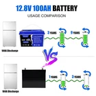 Features: BORN FOR RV LIFE An Affordable 12V 100Ah Deep Cycle LiFePO4 Battery.Your optimal & adequate LiFePO4 Battery for Camper Van, Travel Trailer, Caravan, Hauler, Motor Home, etc. 1/2 LIGHT WEIGHT IN 14.2KG Easily Pick up and go! Weighs 11.6kg, 1/2 lighter than 12V 100Ah lead-acid battery in 25kg.Effortlessly Install the 12V 100Ah LiFePO4 battery in your RVs, no any burden to you and your RVs. 1280Wh ENERGY STORAGE Provides100% 1.28kWh energy, a 2X increase in power output efficiency over lead-acid batteries (approx. 50% usable capacity in a 12V100Ah AGM SLA Lead-acid battery at 1C discharging rate).Timeusb LiFePO4 battery delivers the ideal result on stronger energy storage that users of RVs expected. 100% SAFE WITH SUPERIOR BMS 100A Battery Management System (BMS), protects the battery from safety hazards by providing five types of protection: overcharging, overdischarging, overcurrent, short circuit, and high-temperature environment above 60°C/140°F. It’s a 100% green energy that is free of heavy metals and rare metals, non-toxic, and non-polluting. EFFICIENT DELIEVERY & 24Hrs SERVICE PFCTART provides customers with a responsive and professional customer service team that provides targeted battery solutions within 24 hours of question receipt.Given Timeusbahighly effective after-sales and delivery team, our customers in the United States can receive PFCTART products within 2-7 working days. ATTENTION It is an energy storage battery rather than a start-up battery, and it CAN NOT be used for any kind of golf carts, trolling motor or starting. Package Included : 1 * 12V 100Ah LiFePO4 Battery Pack Please be noted : battery charger is not included. Specifications: Battery type: LIFEPO4 MODEL: 100Ah 12.8V(4S1P) Rated capacity: 100Ah(1280WH) Normal voltage: 12.8V Discharge termination voltage: 10.0V Charging voltage: 14.6V Internal resistance: ≤180mΩ Single cell: IFR 3.2V 100Ah Standard charging. Continuous current: 0.2C5A Continuous voltage: 14.6V Cut-off current: 0.01 C Standard discharge: Constant current 0.2C5A end voltage 10.0V Max. charging continuous current: 100A Maximum discharge continuous current: 100A Operating temperature range. Charge: 0~45℃ Discharge: -20~70℃ Product size: 329*171*235mm Weight : 11.6kg BMS protection: Cell overcharge detection voltage:3.90V±50mV Cell overcharge recovery voltage:3.80V±100mV Cell over-discharge detection voltage:2.00V±100mV Cell over-discharge recovery voltage:2.30V±100mV Rated operational charge current:100A Over current detection:150±30A PCM impedance:≤50mΩ Please note : BMS it supports a maximum of 48V series or 4 batteries of the same voltage and the same capacity in parallel installation, please fully charge the batteries before series/parallel installation to ensure that each battery is at the same voltage and the same capacity.