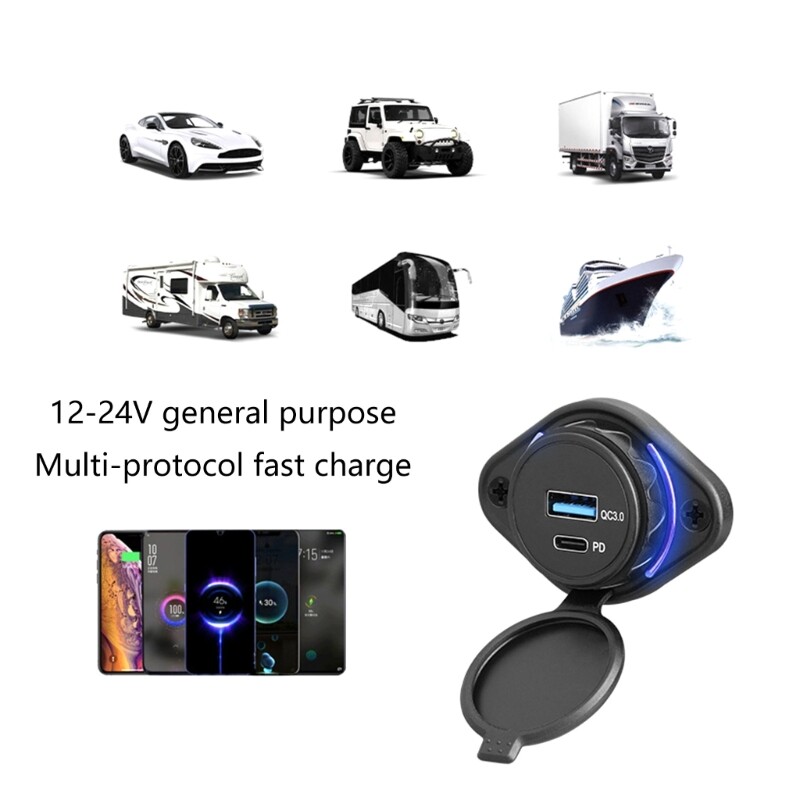 Features: 36W Quick Charge3.0 USB and PD3.0 Type C Port: 18W each port which is faster than conventional Suitable for all popular USB devices, which applies to Car, Motorbike, Bus, RVs, Boats, and more 12/24V vehicle. two devices simultaneously with our fast USB for buses and long distance travel. Specially for buses, our efficient and user friendly ensures uninterrupted charging. Perfect for travelers who need to multiple devices during their journey. Ensure uninterrupted charging for your smartphones and tablets while traveling by bus. Specifications: Material:ABS Input:DC12V-24V Output:18W+18W Package Includes: 1x USB Outlet Panel note: Please allow 1mm errors due to manual measurement. Due to the difference between different monitors, the picture may not reflect the actual color of the item.