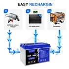 Features: BORN FOR RV LIFE An Affordable 12V 100Ah Deep Cycle LiFePO4 Battery.Your optimal & adequate LiFePO4 Battery for Camper Van, Travel Trailer, Caravan, Hauler, Motor Home, etc. 1/2 LIGHT WEIGHT IN 14.2KG Easily Pick up and go! Weighs 11.6kg, 1/2 lighter than 12V 100Ah lead-acid battery in 25kg.Effortlessly Install the 12V 100Ah LiFePO4 battery in your RVs, no any burden to you and your RVs. 1280Wh ENERGY STORAGE Provides100% 1.28kWh energy, a 2X increase in power output efficiency over lead-acid batteries (approx. 50% usable capacity in a 12V100Ah AGM SLA Lead-acid battery at 1C discharging rate).Timeusb LiFePO4 battery delivers the ideal result on stronger energy storage that users of RVs expected. 100% SAFE WITH SUPERIOR BMS 100A Battery Management System (BMS), protects the battery from safety hazards by providing five types of protection: overcharging, overdischarging, overcurrent, short circuit, and high-temperature environment above 60°C/140°F. It’s a 100% green energy that is free of heavy metals and rare metals, non-toxic, and non-polluting. EFFICIENT DELIEVERY & 24Hrs SERVICE PFCTART provides customers with a responsive and professional customer service team that provides targeted battery solutions within 24 hours of question receipt.Given Timeusbahighly effective after-sales and delivery team, our customers in the United States can receive PFCTART products within 2-7 working days. ATTENTION It is an energy storage battery rather than a start-up battery, and it CAN NOT be used for any kind of golf carts, trolling motor or starting. Package Included : 1 * 12V 100Ah LiFePO4 Battery Pack Please be noted : battery charger is not included. Specifications: Battery type: LIFEPO4 MODEL: 100Ah 12.8V(4S1P) Rated capacity: 100Ah(1280WH) Normal voltage: 12.8V Discharge termination voltage: 10.0V Charging voltage: 14.6V Internal resistance: ≤180mΩ Single cell: IFR 3.2V 100Ah Standard charging. Continuous current: 0.2C5A Continuous voltage: 14.6V Cut-off current: 0.01 C Standard discharge: Constant current 0.2C5A end voltage 10.0V Max. charging continuous current: 100A Maximum discharge continuous current: 100A Operating temperature range. Charge: 0~45℃ Discharge: -20~70℃ Product size: 329*171*235mm Weight : 11.6kg BMS protection: Cell overcharge detection voltage:3.90V±50mV Cell overcharge recovery voltage:3.80V±100mV Cell over-discharge detection voltage:2.00V±100mV Cell over-discharge recovery voltage:2.30V±100mV Rated operational charge current:100A Over current detection:150±30A PCM impedance:≤50mΩ Please note : BMS it supports a maximum of 48V series or 4 batteries of the same voltage and the same capacity in parallel installation, please fully charge the batteries before series/parallel installation to ensure that each battery is at the same voltage and the same capacity.