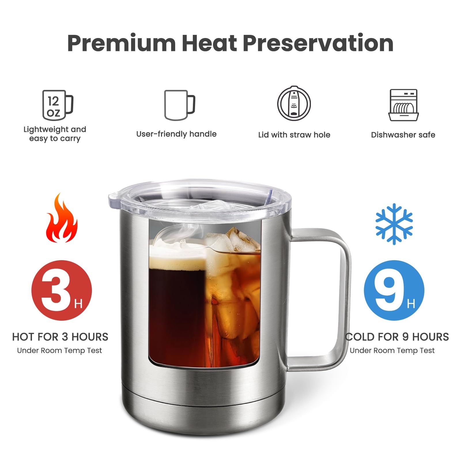 $ 17.9916 oz Insulated Coffee Mug with Handle and Lid, Double Wall Stainless Steel V...