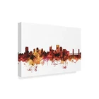This ready to hang, gallery-wrapped art piece features the skyline of Sacramento, California in warm shades of red, orange, yellow, and black on a white background. Art and design were always Michael's favorite subjects at school. He was fortunate to land a job as a graphic designer at of London's most prestigious publishing companies. After 12 years Michael Tompsett made the decision to pursue a full-time career creating his own work. The freedom and time to be able to focus solely on his own projects has been a wonderful experience. Although Michael likes to experiment with different styles and subjects, his main focus is on map art. He enjoys looking for unique and interesting ways to depict something which is very familiar. Maps are visual representations of the world we live in, a world which is incredibly diverse. Apart from maps, Tompsett creates urban landmark and cityscape designs. Giclee (jee-clay) is an advanced printmaking process for creating high quality fine art reproductions. The attainable excellence that Giclee printmaking affords makes the reproduction virtually indistinguishable from the original piece. The result is wide acceptance of Giclee by galleries, museums, and private collectors. Gallery wrap is a method of stretching an artist's canvas so that the canvas wraps around the sides and is secured a , wooden frame. This method of stretching and preparing a canvas allows for a frameless presentation of the finished painting., Artist: Michael Tompsett Subject: Cityscape Style: Modern & Contemporary Product Type: Gallery-Wrapped Canvas Art Made in USA