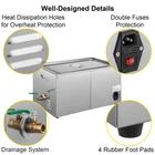 Product Description Russian evaluation article French Influencer Evaluation Video: Click the red link to watch : Digital Ultrasonic Cleaner American Internet Celebrity Tia & Darius Evaluation Video: 1-30L Digital Ultrasonic Cleaner Get a professional diamond ring cleaner at home!!! 40KHZ ultrasonic wave, deeply wash dirt, grime, oil on your valuable's surface, long hole, crevice, and shelter. Silver jewelry cleaner is ideal equipment for the optical shop, jewelry shop, watch shop, mobile phone repair shop, dental, office, home, and other stuff. 40kHz Deep Cleaning Digital Control Panel Premium SUS304 Material User-Friendly Design Key Features 40kHz Frequency With the 40kHz ultrasonic frequency and powerful transducer, our ultra jewelry cleaner does well in cleaning stuff with complex shapes, holes, or long-time stains. Adjustable Time/Temp Time is adjustable from 0 to 30 min, and temperature can be set within RT-176℉/RT-80℃, displayed on LED screens. The heating function dramatically improves cleaning efficiency. Note: When the ultrasonic function is turned on, the temperature will continue to rise even the set value is reached. 1.3/2/3/6/10/15/22/30 L Tank Capacity The sonic jewelry cleaner features a sizeable 1.3/2/3/6/10/15/22/30L(0.34/0.53/0.8/1.6/2.6/4/5.8/8 gal) tank, coming with a cleaning basket and a ball-shaped jewelry cleaning basket to reduce friction during washing. Note: The ball-shapd cleaning basket are not included in every model. If you have any problems, please contact us and we will deal with it for you. 304 Stainless Steel This ultrasonic parts cleaner is made from 304 stainless steel with a noise reduction lid and built-in handles on both sides, designed for durable use and easy cleaning. Humanized Details Heat dissipation holes on the side and back are designed for overheat protection, and a spare fuse is provided in case of over-current. The water outlet valve is convenient for drainage. Versatile Uses Perfect for home or professional use, our ultrasound cleaner machine is widely used to clean jewelry, glasses, watches, metal tools, dental equipment, lab utensils, etc. 30L Specifications Tank Material: Stainless Steel SUS304 Heating Power: 600W Ultrasonic Power: 600W Frequency: 40kHz Power Supply: AC110/220V 60Hz Tank Capacity: 26-30L (Since the bottom of the ultrasonic cleaner is a curved surface, the actual volume will be smaller.) Maximum Working Water : 22.37L Minimum Working Water : 5.32L Time Setting: 0 - 30 minutes (LED Digital Display) Temperature Setting: RT-176℉/RT-80℃ Transducer Quantity: 10 sets Tank Size (L x W x H): 19.69" x 11.81" x 7.87"/50 x 30 x 20 cm Product Size (L x W x H): 23" x 13" x 13.1"/58.5 x 33 x 33.3 cm Package Content 1 x Ultrasonic Cleaner 1 x Cleaning Basket 1 x Ball-Shaped Cleaning Basket 1 x Stainless Steel Cover 1 x Outlet Pipe 1 x Power Cord 1 x Instruction Manual 22L Specifications Tank Material: Stainless Steel SUS304 Heating Power: 600W Ultrasonic Power: 480W Frequency: 40kHz Power Supply: AC110/220V 60Hz Tank Capacity: 19-22L (Since the bottom of the ultrasonic cleaner is a curved surface, the actual volume will be smaller.) Maximum Working Water: 18.32L Minimum Working Water : 5.32L Time Setting: 0 - 30 minutes (LED Digital Display) Temperature Setting: RT-176℉/RT-80℃ Transducer Quantity: 8 sets Tank Size (L x W x H): 19.69" x 11.81" x 5.91"/50 x 30 x 15 cm Product Size (L x W x H): 23" x 13" x 11"/58.5 x 33 x 28 cm Product Weight: 27.8 lbs/12.6 kg Package Content 1 x Ultrasonic Cleaner 1 x Cleaning Basket 1 x Ball-Shaped Cleaning Basket 1 x Stainless Steel Cover 1 x Outlet Pipe 1 x Power Cord 1 x Instruction Manual 15L Specifications Tank Material: Stainless Steel SUS304 Heating Power: 400W Ultrasonic Power: 360W Frequency: 40kHz Power Supply: AC110/220V 60Hz Tank Capacity: 13.5-15L (Since the bottom of the ultrasonic cleaner is a curved surface, the actual volume will be smaller.) Maximum Working Water: 11.2L Minimun Working Water: 3.65L Time Setting: 0 - 30 minutes (LED Digital Display) Temperature Setting: RT-176℉/RT-80℃ Transducer Quantity: 6 sets Tank Size (L x W x H): 13" x 11.81" x 5.91"/33 x 30 x 15 cm Product Size (L x W x H): 15.75" x 13.78" x 11"/40 x 35 x 28 cm Package Content 1 x Ultrasonic Cleaner 1 x Cleaning Basket 1 x Ball-Shaped Cleaning Basket 1 x Stainless Steel Cover 1 x Outlet Pipe 1 x Power Cord 1 x Instruction Manual 10L Specifications Tank Material: Stainless Steel SUS304 Heating Power: 200W Ultrasonic Power: 240W Frequency: 40kHz Power Supply: AC110/220V 60Hz Tank Capacity: 9.6-10L (Since the bottom of the ultrasonic cleaner is a curved surface, the actual volume will be smaller.) Maximum Working Water:7.41L Minimun Working Water:1.91L Time Setting: 0 - 30 minutes (LED Digital Display) Temperature Setting: RT-176℉/RT-80℃ Transducer Quantity: 4 sets Tank Size (L x W x H): 11.81" x 9.45" x 5.91"/30 x 24 x 15 cm Product Size (L x W x H): 15" x 11" x 11.4"/38 x 28 x 29 cm Package Content 1 x Ultrasonic Cleaner 1 x Cleaning Basket 1 x Ball-Shaped Cleaning Basket 1 x Stainless Steel Cover 1 x Outlet Pipe 1 x Power Cord 1 x Instruction Manual 6L Specifications Tank Material: Stainless Steel SUS304 Heating Power: 200W Ultrasonic Power: 180W Frequency: 40kHz Power Supply: AC110/220V 60Hz Tank Capacity: 5.8-6L (Since the bottom of the ultrasonic cleaner is a curved surface, the actual volume will be smaller.) Maximum Working Water: 4.82L Minimun Working Water: 1.25L (Since the bottom of the ultrasonic cleaner is a curved surface, the actual volume will be smaller.) Time Setting: 0 - 30 minutes (LED Digital Display) Temperature Setting: RT-176℉/RT-80℃ Transducer Quantity: 3sets Tank Size (L x W x H): 11.81" x 5.91" x 5.91"/30 x 15 x 15 cm Product Size (L x W x H): 15" x 7.9" x 10.8"/37.5 x 20 x 27.5 cm Package Content 1 x Ultrasonic Cleaner 1 x Cleaning Basket 1 x Ball-Shaped Cleaning Basket 1 x Stainless Steel Cover 1 x Outlet Pipe 1 x Power Cord 1 x Instruction Manual 3L Specificati