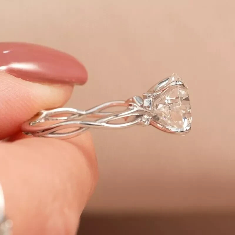 Elevate your special moments with the timeless elegance of this 14k White Gold Plated Moissanite Women Wedding Ring. Crafted with a 3.50CT round-cut natural moissanite stone, its brilliance and clarity are sure to capture attention. The sterling silver base, coated with a lustrous white gold layer, provides a durable and beautiful setting for the gem. Designed for versatility, this ring is available in all sizes and can be personalized to your liking. Whether it's an anniversary, birthday, or any other significant occasion, this ring is a sophisticated choice that will complement any ensemble. Proudly made in the United States, it embodies both the quality and craftsmanship expected from a jewelry piece that celebrates love.