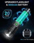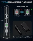 【Brightest Flashlight for Outdoor Enthusiasts】 The super bright flashlight produces a bright, focused beam can lights up the whole room even the darkest corners (over a beam distance of 2500ft/762m) . This is the perfect powerful flashlight for everyday use. It's great for camping, hiking, or simply navigating around work at night. 【Adjustable Focus & 5 Light Modes】This high lumen flashlight has 5 lighting modes, High-Medium-Low-Strobe-SOS. As you need, you can stretch the head of the camping flashlight to adjust the focus. The Spotlight for Long-distance Observation and the Floodlight for large-area illumination. flashlights can emit a very bright light that penetrates darkness effectively and illuminates long distances. 【Compact Design & Easy to Operate】The flashlight lightweight and compact design for easy carrying and storage. Small in size but bursts with very bright light.One-button operation makes it more convenient and efficient, and easily switches to different lighting needs with one hand. 【USB Charging Indicator & Long-lasting Battery】Tactical flashlights built-in USB charging port allows charging from power banks, wall outlets and laptops for convenient indoor and outdoor charging. The switch button Lights Up Red indicate the need for Charging, and Green to indicate a Full Battery. The rechargeable flashlights battery provides lighting up to 20 hours of brightness (low mode). 【Durabe & Ip67 Waterproof】This powerful flashlight is made of high quality space aluminum alloy and is tested for high drop and fall protection. The build quality is strong enough to withstand harsh usage environments and is suitable for extreme weather such as rain, snow and sandstorms. Meanwhile, the Ip67 rated waterproof design gives you peace of mind when exploring the outdoors. 【Value LED Flashlight & 2 Years Customer Service】You will get 1*Super Bright Flashlight, 1*Powerful Rechargeable Battery,1*Type-C Charging Cable, 1*Lanyard and 1*Instruction Manual, 1*Packing Box. We provide 7/24 hours customer service. If you have any questions about the brightest flashlight, please feel free to contact us. We will be happy to help you solve the problem. We provide 2 years after-sales service and unconditional return flashlight policy, so that you can use it with confidence.