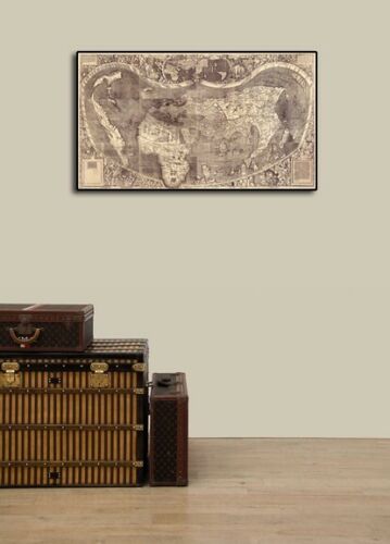 Artscape Galleries Posters from a Simpler Time . . . . . Store Categories Waldseemuller’s Universalis Cosmographia Secundum Ptholomaei Traditionem et Americi Vespucii Alioru[m]que Lustrationes Year: 1507 Size: 20"x36" Martin Waldseemüller’s 1507 world map - The first known map to name the new world "America" in recognition of Amerigo Vespucci ’s voyages of 1501–1502 to the New World and his understanding that a new continent had been uncovered as a result of the voyages of Columbus and other explorers in the late fifteenth century. Waldseemüller’s map supported Vespucci’s revolutionary concept by portraying the New World as a separate continent, which until then was unknown to the Europeans. It was the first map, printed or manuscript, to depict clearly a separate Western Hemisphere, with the Pacific as a separate ocean. The map represented a huge leap forward in knowledge, recognizing the newly found American landmass and forever changing the European understanding of a world then divided into only three parts—Europe, Asia, and Africa. This Classic Vintage Style poster honors the beauty of this unique art form and evokes the vivid images of simpler times. Each of our prints are custom reproductions printed on 68lb Heavyweight Enhanced Matte Art Paper. These Historic Art Prints are suitable for framing, mounting or direct display on any wall! Graphics and template design by and copyright Artscape Galleries / Posters Past     MAP290 USPS 1st Class USPS Priority Mail USPS 1st Class International Combined Shipping is available - Add $1 for each additional print We stand behind the quality of every print we sell. If you aren't satisfied with your purchase, contact us within 30 days to arrange for an exchange or a full refund. Artscape Galleries is a family owned business based in Las Vegas, Nevada. We have been selling art prints exclusively online for over 10 years. With thousands of satisfied buyers ranging from Movie Studios to Museums, you will not be disappointed! Please vist our other eBay store! “Impressed! Vibrant colours, edge to edge print. Very excited to get it framed!” “Super fast delivery and the colors are amazingly rich. Thanks for everything!” “Terrific experience with this seller, we buy more from him than anyone on Ebay!” “WOW! Beautiful map! Lightning fast shipping, Very well packed, Great eBayerA++++” “Vibrant and bright! Pic does not do it justice...looks amazing!” _gsrx_vers_841 (GS 7.0.16 (841))