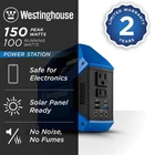 Portable solar generator with 150 peak watts/100 running watts 4 charging methods with 2-Year Limited Warranty Westinghouse 155 Wh unit offers LCD display The Westinghouse iGen160s Portable Power Station is a small but rugged off-grid portable generator that supports charging for all your necessities and electronic devices, GoPros, drones, lights, or speakers. It's engineered without an engine for clean power without the hassle of fumes, fuel, or noise to make it an ultra-versatile silent power source that is maintenance-free. With solar panel capability, the iGen160s will work in unison with any solar panel that has a DC13V-25V/2A Max port. With 100 running watts and 150 peak watts, this station is designed for outdoor activities like camping, tailgating,... Fitness Equipment Best choice of motor parts 150W Lithium-Ion Portable Power Station w/Power Inverter,LED Display,and Flashli Portable solar generator with 150 peak watts/100 running watts 4 charging methods with 2-Year Limited Warranty Westinghouse 155 Wh unit offers LCD display The Westinghouse iGen160s Portable Power Station is a small but rugged off-grid portable generator that supports charging for all your necessities and electronic devices, GoPros, drones, lights, or speakers. It's engineered without an engine for clean power without the hassle of fumes, fuel, or noise to make it an ultra-versatile silent power source that is maintenance-free. With solar panel capability, the iGen160s will work in unison with any solar panel that has a DC13V-25V/2A Max port. With 100 running watts and 150 peak watts, this station is designed for outdoor activities like camping, tailgating, or festivals where you need power on the go. Functional for indoor use as well, it conveniently comes with a reading light and a dual mode flashlight for low light environments. The iGen160s is extremely compact and lightweight, so it can easily be tucked away into your bag or vehicle storage compartment while a built-in handle allows it to be hooked onto gear or easily carried. A premium power solution as compared to basic 5000 mAh power banks, it's got more power for longer with more options for different charging requirements. The control panel houses two household outlets and four USB ports which include a USB-C and QualComm Quick Charge 3.0 port for faster charging. Combined with three 5.5 mm 12-Volt DC outputs, the Westinghouse iGen160s is the perfect little companion to take with you anywhere that you can depend on. Can charge up to 9 devices at a time that can power up to 40-hours of lights, 3-hours of TV, 14 smartphone charges, 3 laptop charges, 6 drone charges, and 2 nights on select CPAP devices Charges in as little as 6 -hours with included car charger, wall charger, and optional solar panel charger Solar panel provides sustainable use time after time to be environmentally friendly Two 5-Volt USB ports, 1 USB-C port, 1 quick charge 3.0 port, and two 120-Volt household outlets Lithium-ion batteries last almost twice as long as traditional forms of power and are maintenance-free No engine means no fuel, no fumes, and no noise for hassle-free use Silent operation makes this campsite and neighbor-friendly Multi-use device as portable power bank, flashlight, or reading lamp Easy to read LCD display houses all controls in 1 convenient location with on/off keys for AC and DC outlets with flashlight and reading lamp buttons Ultra lightweight at 3.75 lbs. and compact to easily carry and transport with solid carrying handle Low voltage protection, short circuit protection, and overload protection protects the battery and connected devices to ensure peace of mind and reliability Versatile for indoor and outdoor use Great for emergency backup at home or construction locations with no access to utility power Perfect for camping, hiking hunting, fishing, road trips, tailgating, music festivals, or outdoor parties Comes with 12-Volt DC car charger-style outlet, car charger, wall charger Click here to shop all Westinghouse products Application:Job Site,RV|Application:Job Site,RV|Battery Capacity (Wh):155|Battery Capacity (Wh):155|Color Family:Blue|Color Family:Blue|Features:Automatic Voltage Regulation,Electric Start,Extended Handles,Fire Resistant,Fuel Gauge,Grounded,LCD Display,On/Off Switch,Overload Protection,Phone/Data Protection,Replaceable Battery,Short Circuit Protection,USB Port|Features:Automatic Voltage Regulation,Electric Start,Extended Handles,Fire Resistant,Fuel Gauge,Grounded,LCD Display,On/Off Switch,Overload Protection,Phone/Data Protection,Replaceable Battery,Short Circuit Protection,USB Port|Generator Voltage:120|Generator Voltage:120|Included:Adapter,Battery|Included:Adapter,Battery|Number of Panels:0|Number of Panels:0|Number of Receptacles:9|Number of Receptacles:9|Operational Volume (dB):0|Operational Volume (dB):0|Outlet Type:120V 20A,12V DC|Outlet Type:120V 20A,12V DC|Product Weight (lb.):3.75 lb|Product Weight (lb.):3.75 lb|Running Wattage:100|Running Wattage:100|Solar Panel Wattage:Generator Only|Solar Panel Wattage:Generator Only|Start Type:Push Button|Start Type:Push Button|Starting Wattage:150|Starting Wattage:150|Suggested Uses:Battery Charger,Lights,Mobile Devices,Small Electronics|Suggested Uses:Battery Charger,Lights,Mobile Devices,Small Electronics|Certifications and Listings:No Certifications or Listings|Certifications and Listings:No Certifications or Listings|Manufacturer Warranty:2 Year Limited|Manufacturer Warranty:2 Year Limited|Product Height (in.):7 in|Product Height (in.):7 in|Product Length (in.):8.14 in|Product Length (in.):8.14 in|Product Width (in.):3.77 in|Product Width (in.):3.77 in Item Specifics UPC 850008720987 MPN iGen160s Brand Westinghouse Type Battery Generators Item Width 3.77 in Item Height 7 in Item Weight 3.75 lb Payment If you do not have a PayPal account, to get started and buy your first item with us is very easy. Simply click on the 'Buy It Now' button and follow the eBay checkout steps. Select Pa