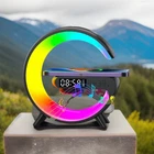 This is a 15W fast wireless charging pad stand with a speaker, TF card slot, RGB night light. The charging pad is compatible with universal devices and features a magnet mounting type. It is made of plastic and aluminum, with a slim design. The unit includes a charging cable and has one charging port. It also offers wireless charging connectivity and can be mounted on a wall, desktop, or desk.