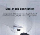Product description: Name: M7 Ergonomic wireless mouse Compatible Devices: Smartphones, Tablets, Laptop with Bluetooth functionality Product Weight:≈88g Product function: Make device work more easy Function 1: Bluetooth connection/2.4G mode Function 2: 6-key layout Function 3: 3 Level DPI adjustable Function 4: Rechargeable Function 5: Suitable for various devices Function 6: Ergonomic inner arc groove design We support wholesale and drop shipping, contact us for preferential prices. M7 Ergonomic wireless mouse Bluetooth wireless dual-mode design, ergonomic design. Ergonomic inner arc groove design Let the hand and the mouse fit better, and you will not feel tired after long-term use. Dual mode connection Using stable 2.4GHz wireless technology & Bluetooth wireless connection, adapt to various usage scenarios. Suitable for multiple operating systems. Compatible with all iOS/Android/Microsoft smartphones/tablets/laptops. Reliable wireless transmission. Advanced wireless transmission technology, encrypted connection with devices, reliable wireless connection with almost no interference & frame drop. 1600 DPI adjustment 800-1200-1600 three-stage DPI switching, accurate positioning without frame drop, sensitive response and smooth operation. Advanced Optical Sensors Advanced optical sensor, suitable for various scenes, no matter with or without mouse pad, rough, uneven surface. Excellent battery life. High-efficiency energy-saving engineering design allows the battery to have an excellent continuous use time. Product parameters: FAQ Q: How many devices can the mouse be connected to at the same time? A: Bluetooth mode (1 devices),2.4G USB mode (1 device). Q: How to connect and switch bluetooth connection or usb receiver? ① Turn on the back switch to "ON". ② Press the "red" button on the back, the blue light flashes for the Bluetooth mode, and the green light flashes for the USB receiver. ③ For Bluetooth mode, find "BT Mouse 5.2 or 3.0" in the Bluetooth list and connect it. ④ Receiver mode, insert the USB into the USB port of the computer, wait for about 15 seconds, and then it can be used. (Note: If BT Mouse is not displayed in Bluetooth mode, please press and hold the "red" button on the back for 3-5 seconds until BT Mouse is displayed.) ⑤ Use the Bluetooth & USB receiver link at the same time, and press the "red" button on the back to switch freely between the two modes. Q: What should I pay attention to when using a mouse in iOS system? A: Upgrade IOS system above 13.0.