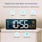 【16.2 Inch Large LED Display】The digital clock has a 16.2 inch large screen display, 4 inch high contrast clear jumbo digits make it much easier to read even from a distance and from all angles. Here are all the features that you might expect for a digital wall clock: Time, Date, Week, and Temperature. ATTENTION: Must be plugged in to work. Not battery operated. 【10 Levels Automatic Brightness Dimmer】With 10-level adjustable brightness display, you can easily adjust to a comfortable brightness manually by using the remote control. The LED clock has a built-in automatic dimming sensor, which can also automatically adjust the brightness as the light changes, smart to provide you with the needs. 【Memory Function】There is a built-in memory function, even if the power is disconnected, the time data will not be lost, no need to reset. Additionally, you can set two separate alarms if you have a different time schedule. And this large wall clock has a count-up or count-down function (up to 99 minutes and 99 seconds). 【Remote Control】All the settings and operations of the big wall clock do not need to be removed, but can be easily done with the remote control. Note: If you can't find the remote control and USB cable, be sure to open the other end of the box to check. 【Beautiful and Functional】This wall clocks is suitable for living room, kitchen, garage, farmhouse, office, warehouse, classroom, gym, shop, nursery. And it is also the best gift for friends, partner and the elderly. Attention: There is no plug, please connect with the USB port or ONLY 5V/1A and 5V/2A adapter. Adapter is needed to keep the clock working. The battery power only works for storing the clock setting in the case of main power outage. Product Description Here are all the features that you might expect for a digital wall clock: Time, Date, Week, and Temperature. This isn't just a clock, it's a beautiful piece of home decor art. 16.2 inch large screen display, 4 inch high contrast clear jumbo digits, easy to read The appearance is modern and elegant Say goodbye to the annoying ticking of traditional clocks and enjoy a quiet good time ATTENTION: Must be plugged in to work. Not battery operated Memory Function There is a built-in memory function, even if the power is disconnected, the time data will not be lost, no need to reset. NOTE: If you do not find the remote control and USB cable, be sure to open the other end of the box to check. Timer function & 10-level adjustable brightness The large wall clock has a count-up or count-down function (up to 99 minutes and 99 seconds) to support you when you need it. With 10-level adjustable brightness display, you can easily adjust to a comfortable brightness manually by using the remote control. It can also automatically adjust the brightness as the light changes. ATTENTION: There is no plug. PLEASE connect with the USB port or ONLY 5V/1A and 5V/2A adapter! Excessive voltage may cause circuit damage. Important: Adapter is needed to keep the clock working. The battery power only works for storing the clock setting in the case of main power outage. Time, date, week and temperature are displayed on the same screen. ATTENTION: Must be plugged in to work. Not battery operated. Really large! It is bigger and clearer than other wall clocks.