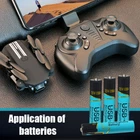 16Pcs 1.5v 2200mWh AA 660mWh AAA Rechargeable Lithium Batteries USB Charging Fetures: 1. 【Easy to Charge with Type C Cable】: Unique USB charging design, Negative charging and USB C AA AAA battery rechargeable lithium ion are built in advanced Type-C port. USB Rechargeable lithium lion aa batteries with 2-in-1 USB charging cable for fully charge in around 2.5 hours. You can charge 2 packs lithium ion AA AAA batteries at the same time, no longer need for traditional aa battery charger or adapter. With USB Type C cable, you can fully charge it within 1-1.5 hours. Built-in LED charging indicator, green LED blinks when charging; Green LED stays on when fully charged. Indicator is on charging type c port. 2. 【1000+ Cycle and Eco-friendly USB AA AAA Battery Rechargeable Lithium ion&Environmental protection】: Thanks to advanced lithium-ion technology, rechargeable battery AA AAA USB batteries can be charged 1000+ times, saving thousands of alkaline AA batteries, reducing pollution, saving you money, and environmental protection. AA lithium rechargeable batteries do not contain heavy metal pollutants and can be recycled to avoid environmental pollution 3. 【High Capacity 1.5V Lithium AA AAA USB Rechargeable Battery】: The voltage of rechargeable AA AAA batteries is 1.5v. Consistent 1.5v output can make your device work more stable; strong power, same effect as alkaline AA batteries. USB aa batteries are perfect for toys, remote controls, etc. 4. 【Protected 1.5V Lithium AA AAA USB Rechargeable Battery】: Designed to protect the safe operation of the chip, it supports a variety of safety functions, including overcharge, overdischarge, overtemperature and short circuit protection. Note: These AAA Lithium USB Rechargeable Batteries AA cannot be used for products with continuous high current consumption, if the discharge current is higher than 2A due to overcurrent protection, the battery will automatically turn off. 5. 【Long Lasting 1.5V Lithium AA AAA USB Rechargeable Battery】: This USB C AA AAA battery rechargeable lithium ion is widely applied to Outdoor Lamp, Children's toys, Electric toothbrush, TV Remote, patio lights, LED Candle, Radio, Camera, Clock, Shaver, Gaming Controller,photography lights ,it is great replacement for non-rechargeable battery. Specification: 1. Product Name: 4Pcs AA 2200mWh and 4Pcs 1.5v AAA Lithium USB Rechargeable Batteries 660mWh 2. AA Battery size: 1.96inch *0.55inch (14mm * 50mm) , AAA Battery size: 1.77inch *0.39inch (10mm * 45mm) 3. Product model: No.5 1.5v AA battery rechargeable USB type c & No.7 AAA lithium USB rechargeable batteries 4. Product voltage: Type C -1.5V 5. USB AA Battery capacity: 2200mwh, USB AAA Battery capacity: 600mwh 6. Built-in LED charging indicator, green LED blinks when charging; Green LED stays on when fully charged. 7. Charging: TYPE-C intelligent fast charging 8. Recommended Uses For Product: Led Flashlight, Remote Controls, Electric Toys, Smart Door Lock Warm Tips: 1. Before use, please remove the plastic packaging film of the battery. 2. Please check the "+" and "—" directions of the battery before you charge the battery. 3. Do not put the product into fire, short circuit, disassemble and extrude. 4. Do not mix charging with different type of batteries, which may explode or leak, causing personal injury. 5. Please use up the power each time, then recharge it otherwise it will affect its capacity and lifetime. 6. Please take out the battery if you won't use for a long time to avoid battery leakage. Package included: 8x 1.5V AA Battery Rechargeable USB Type C 2200mWh 8 x 1.5v AAA Lithium USB Rechargeable Batteries 660mWh 4x 2-in-1 USB Type-C Charging Cable On Jan 23, 2025 at 01:12:58 PST, seller added the following information: