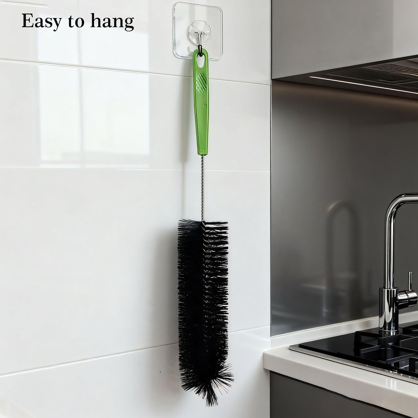 17 Inches Extra Long Handle Bottle Cleaning Brush for Narrow Neck Wine, Black Product Details 【EXTRA-LONG & WIDE-REACH DESIGN】 – The 17” brush features a 2.5” wide bristle and flexible stem, allowing it to easily reach and scrub bottle bottoms, and the deepest corners of narrow-neck wine bottles, beer brewers, decanters, baby bottles, tumblers, glass jars, vases, carboys, jugs, thermos, teapots, hummingbird feeders and kitchen sinks. 【FOOD-GRADE & BPA-FREE MATERIAL】 – Made from food-safe polypropylene and stainless steel, all brushes are odor-free, non-toxic, and dishwasher-safe, ensuring healthy cleaning for baby bottles, tumblers, and kitchenware. Perfect for kitchen, lab, and daily use. 【STRONG & ELASTIC BRISTLES FOR EVERY SURFACE】 – Combination of firm nylon bristles for tough stains and delicate surfaces. Effectively removes coffee, tea, and mineral deposits without scratching. Multi-Surface Use: Works on glass, plastic, stainless steel, porcelain, and more. 【COMFORT GRIP HANDLE + HANGING DESIGN】 – Ergonomically designed non-slip handles offer a secure grip. Set comes with a hanging hole to keep brushes organized, dry, and within easy reach. 【HOT Water REVIVAL TIP】 – Bristles distorted? Soak in hot water to restore shape instantly because of the high quality of the bristles. bottle brush