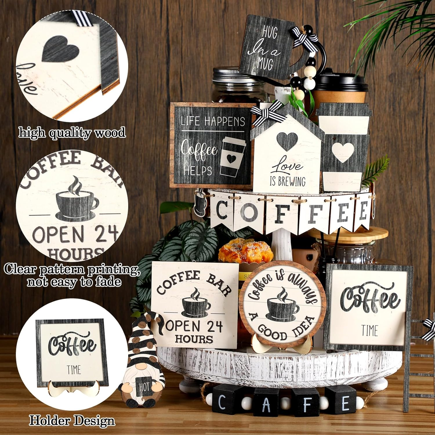 Absolutely love this coffee bar set! The 17-piece wooden decor adds such a charming farmhouse vibe to my kitchen. The details are adorable—coffee cups, ladders, and gnomes create a cozy café feel. The quality is solid, and it’s perfect for styling tiered trays or gifting to fellow coffee lovers. So happy with this purchase!