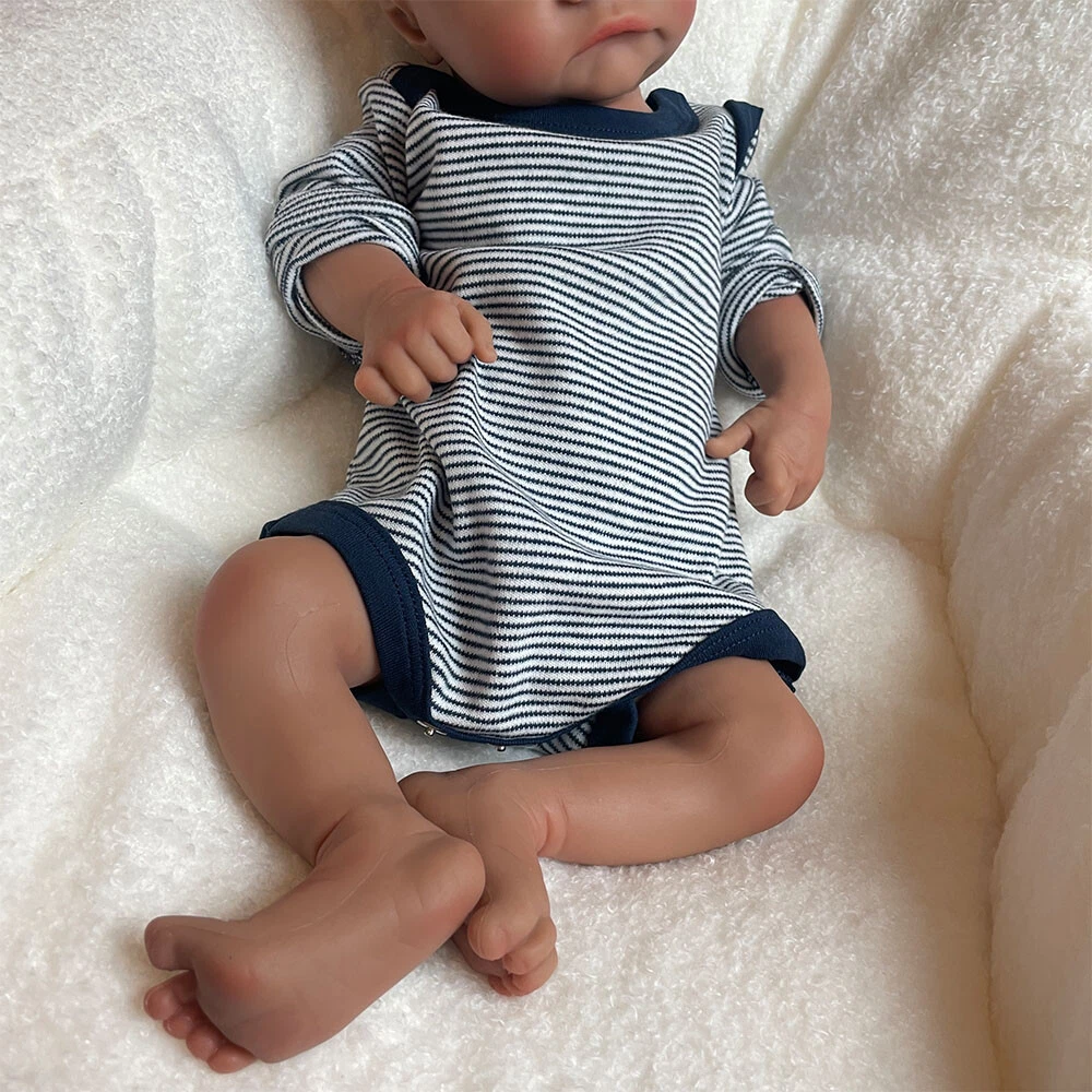 PACKAGE INCLUDES • 1 x painted Silicone Reborn boy doll (anatomically correct) Tips: Silicone doll daily care can be done by patting talcum powder all over the body after cleaning the doll, keeping it dry and avoiding sticking. • Size: Around 18Inches from head to toe, . It fits into newborn size hat, diapers, and other baby accessories • Material: made of authentic silicone. We use only the best reborn supplies,making your reborn very realistic. • Mouth: Closed mouth ,he can't take a pacifier • Function: Doll's limbs are flexible and poseable, the doll can sit, lay down easily and have a bath, but cannot stand up, speak, pee, blink • Safety: Conforms to the safety requirements of ASTM F963 and EN71 for ages 3+ • Application: Birthday present, christmas gift, children playmates, grandparent's companion, and doll collection • Recommended Age Range: 3 years old+ 【Kind Reminder】Each of our dolls is purely handmade, and the pictures are real-life photos. There may be slight differences between each silicone doll, and there may be slight flaws. If you mind, please choose carefully. 【User Notice】 Our reborn baby dolls' head has a silicone injection hole. The injection hole is one of the processes of making dolls. So it will leave a slight mark on its head. This is not a doll's quality problem.