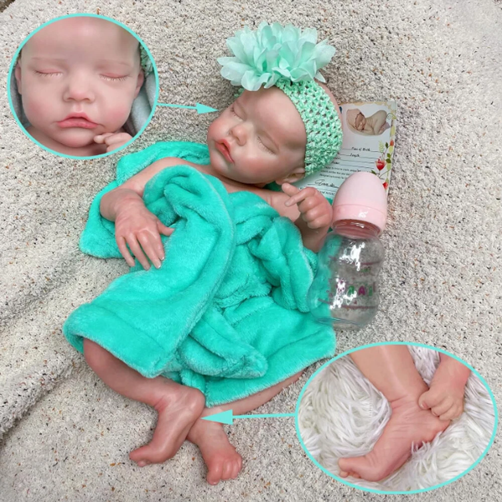 PACKAGE INCLUDES • 1 x painted Silicone Reborn Girl doll (anatomically a girl) *Net weight is about :5.3lb • Size: Around 18Inches from head to toe, . It fits into newborn size hat, diapers, and other baby accessories • Material: made of authentic silicone. We use only the best reborn supplies,making your reborn very realistic. • Mouth: Closed mouth ,she can't take a pacifier • Function: Doll's limbs are flexible and poseable, the doll can sit, lay down easily and have a bath, but cannot stand up, speak, pee, blink • Safety: Conforms to the safety requirements of ASTM F963 and EN71 for ages 3+ • Application: Birthday present, christmas gift, children playmates, grandparent's companion, and doll collection • Recommended Age Range: 3 years old+ 【Kind Reminder】Each of our dolls is purely handmade, and the pictures are real-life photos. There may be slight differences between each silicone doll, and there may be slight flaws. If you mind, please choose carefully. 【User Notice】 Our reborn baby dolls' head has a silicone injection hole. The injection hole is one of the processes of making dolls. So it will leave a slight mark on its head. This is not a doll's quality problem. Tips: Silicone doll daily care can be done by patting talcum powder all over the body after cleaning the doll, keeping it dry and avoiding sticking.
