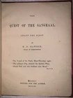 The Quest of the Sangraal: Chant the First by R. S. Hawker Exeter: Printed for the Author 1864 First Edition Slim octavo, 45 pages, bound in quarter red leather over red cloth covered boards. Spine lettered in gilt. Marbled endpapers. Previous owner Nathan Comfort Starr’s neat bookplate and dated inscription, with additional ownership inscriptions by later scholars. New free endpapers. Some slight rubbing and wear, minor foxing and discoloration, else in very good + condition. The Quest of the Sangraal: Chant the First (Exeter, 1864) is a mystical Arthurian poem by Robert Stephen Hawker, the eccentric Cornish clergyman and poet best known for “The Song of the Western Men.” Written in elevated blank verse, the work reimagines the medieval quest for the Holy Grail as a Christian allegory of divine revelation and spiritual yearning. Hawker blends romantic medievalism with the moral and devotional intensity of the Victorian religious imagination, depicting Arthur’s knights as seekers of ultimate truth and purity in a world shadowed by sin and doubt. Though only the first “chant” of a projected sequence was ever published, the poem remains a striking expression of Hawker’s fusion of Celtic legend, Anglican mysticism, and poetic idealism—an ambitious, if fragmentary, contribution to nineteenth-century Grail literature. This copy bears Nathan Comfort Starr’s personal bookplate along with a sequence of dated inscriptions that together form an exceptional record of scholarly provenance. Starr—an influential American literary scholar and Rhodes alumnus—was one of the early twentieth century’s foremost authorities on Arthurian legend and the history of learning. His 1920 Oxford inscription situates the book at a formative moment in his academic career, when he was deeply engaged in the study of medieval and religious literature that would later define his work. The subsequent ownership by Elliot A. Wieser in Cambridge, Massachusetts (1928), and Michael L. Wyer in Ithaca, New York (1969), suggests the book remained within successive generations of university scholars, from Harvard to Cornell. The presence of Starr’s bookplate and these linked inscriptions together document a remarkable continuity of intellectual ownership, reflecting the sustained academic interest in Hawker’s Quest of the Sangraal across half a century. If you have any questions, feel free to ask, and don't forget to check out my other listings.