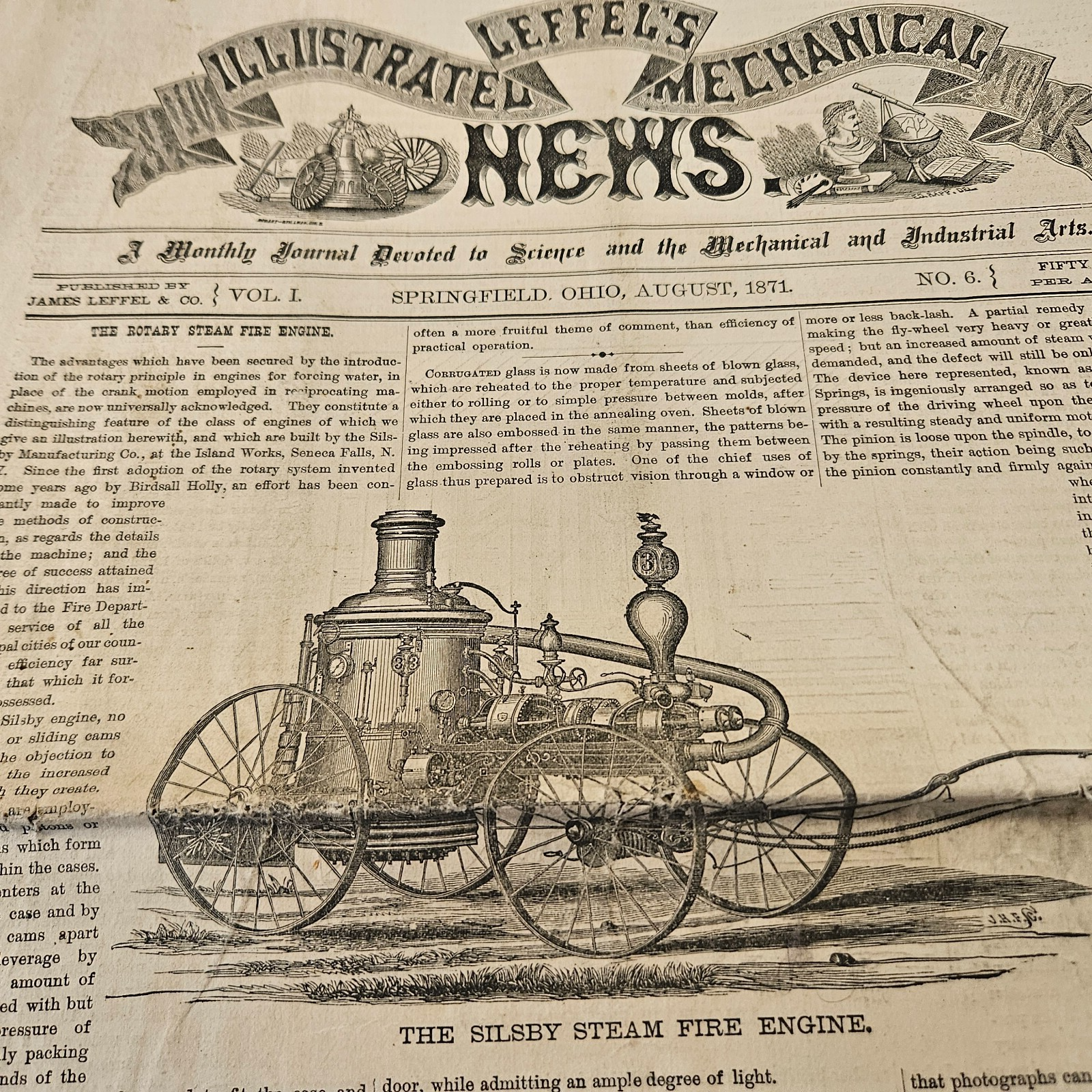 PLEASE read all of the listing. Please wait for your invoice from us before paying. I ONLY sell antique and vintage items that are collectible. Keep visiting for more interesting items. Description: Original 1871 Vol.1 No. 6 issue of Leffel's Illustrated Mechanical News. It measures 11 1/2" x 16 3/4" opened and complete with all 8 pages. Listing another and combine and ship both for price of one. Offers considered. All my items are guaranteed original. I do not believe in owning or selling reproductions. If you have any doubts at all, you are welcome to return item for a full refund including shipping. I am listing some other interesting items in different categories so please see my (view seller's other auctions) and combine to save on shipping. Powered by SixBit's eCommerce Solution