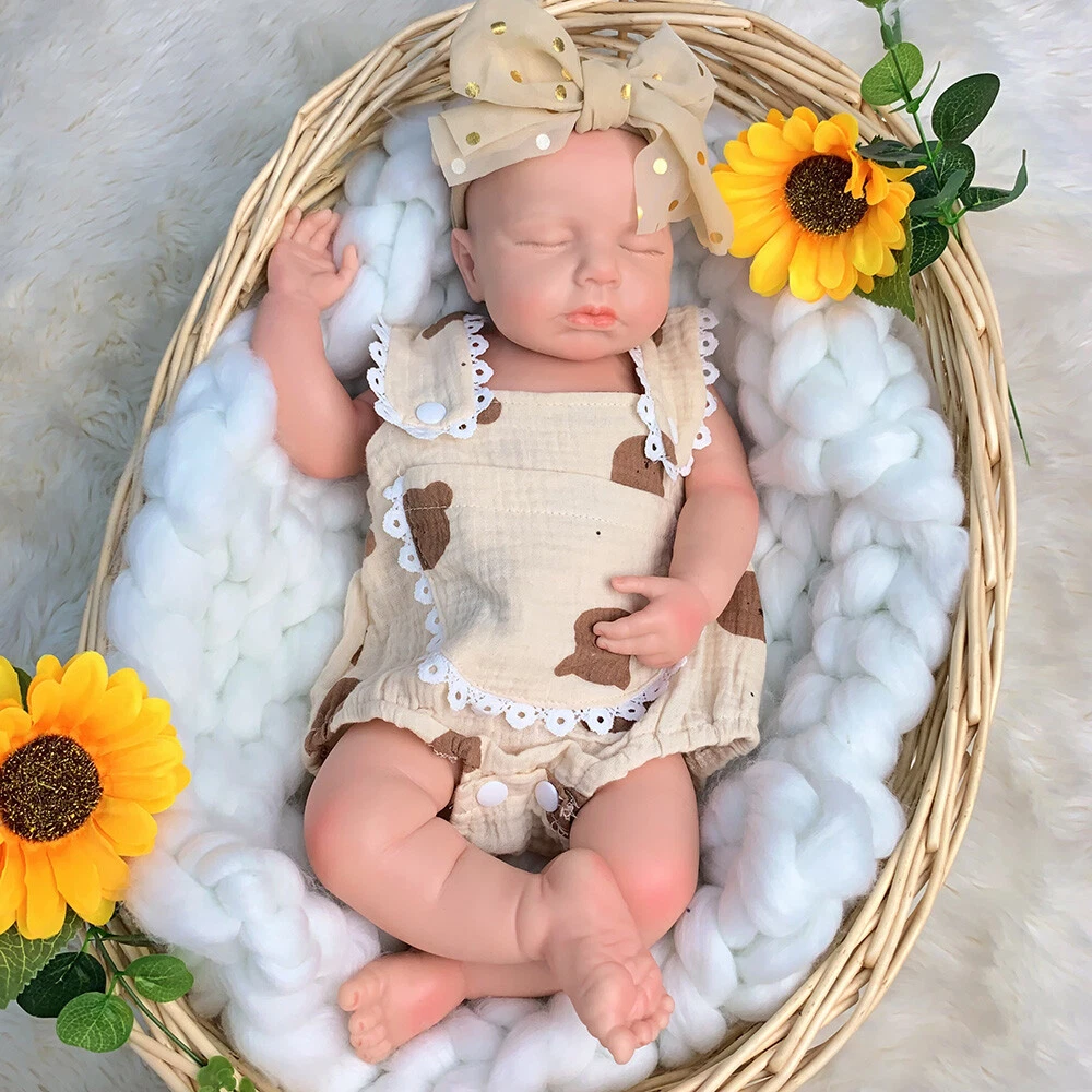 She is about 18inch ,painted baby girl(Anatomically Correct) Net weight is :6.82lb PACKAGE LISTS: 1x Full silicone baby girl. Tips: Silicone doll daily care can be done by patting talcum powder all over the body after cleaning the doll, keeping it dry and avoiding sticking. Real Full Silicone Doll: Washable Full Platinum Solid Silicone Body, Absolutely different with the hollow vinyl baby doll,full silicone makes her feel like a real baby in your arms. Gentle touch, perfect for holding, rocking and cuddling. waterproof, can be bathed with your baby. Please take care of silicone baby, don't pull her and be gentle when bath or change clothes for her. Enjoy Fun With the Baby: Dress her as you like to be your favorite baby with 0-3 months baby clothing. Special choice for preschool & family activity, photo props, role-playing, nurturing play and doll collections.Children can dress up dolls according to their wishes, developing social and cognitive abilities from an early age. 1. Play doll for babies and Grandma Accompany doll that will never let them feel alone. 2. Add to your Collection of Reborn Babys. 3. For training of Maternity Matron, Nursery, mother-to-be. you can practice how to hold and take a baby with it. 4. Health workers for Alzheimer's, Autism & and many more with special needs with huge health calming benefits. 5. Especially for those who like baby, you can find the special feeling of being a mother. 6. Can accompany you in life. 【Kind Reminder】Each of our dolls is purely handmade, and the pictures are real-life photos. There may be slight differences between each silicone doll, and there may be slight flaws. If you mind, please choose carefully. 【User Notice】 Our reborn baby dolls' head has a silicone injection hole. The injection hole is one of the processes of making dolls. So it will leave a slight mark on its head. This is not a doll's quality problem.