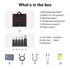 Model:FFSP-80M Material:Monocrystalline silicon Maximum Power(Pmax): 80W±3% Maximum Power Voltage(Vmp):18.00V Maximum Power Current (Imp):4.44A Open-Circuit Voltage (Voc): 22.50V Short-Circuit Current (Isc):4.69A Nominal Operating Cell Temp.(NOCT):-45 to 80℃ Maximum System Voltage: DC1000V Foldable Dimension:48*52*1.2(cm) Expansion Dimension:96*52*0.6(cm) Net Weight:2kg Package Weight:3kg Package Size:63*50.5*4cm Package List: 1*80W Flexible Foldble Solar Panel(40W*2) 1*3M SAE cable,1*10A 12Vcontroller, 1*English User Manual Cable thickness: 2x1.0 mm² (The above data is based on the laboratory standard test environment) For field connections,use minimun No.12AWG copper wires insulated for a minimum 90℃ Standard Test Conditions: AM=1.5 IRRADIANCE=1000W/m2 Temp.=25℃ (The size is manually measured and there is a certain error.) Controller support 12V lead-acid,lithium ions and LiFePO4 battries. The controller cannot be used to test solar panels.Under sufficient light conditions, a multimeter should be used for no-load test. Model:FFSP-110M Material:Monocrystalline silicon Maximum Power(Pmax):100W±3% Maximum Power Voltage(Vmp):18.00V Maximum Power Current (Imp):6.1A Open-Circuit Voltage (Voc):22.5V Short-Circuit Current (Isc):6.35A Nominal Operating Cell Temp.(NOCT):-45 to 80℃ Maximum System Voltage: DC1000V Foldable Dimension:66*48*1.2(cm)cm Expansion Dimension:96*66*0.6cm Net Weight: 2.4 kg Package Weight:2.8kg Package Size:77*50.5*4cm Package List: 1*100W Flexible Foldble Solar Panel (50W*2) 1*3M wire, 1*10A 12Vcontroller, 1*English User Manual
