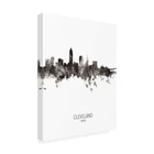 This ready to hang, gallery-wrapped art piece features a black ink cityscape of Cleveland Ohio over a white background Art and design were always Michael's favorite subjects at school. He was fortunate to land a job as a graphic designer at of London's most prestigious publishing companies. After 12 years Michael Tompsett made the decision to pursue a full-time career creating his own work. The freedom and time to be able to focus solely on his own projects has been a wonderful experience. Although Michael likes to experiment with different styles and subjects, his main focus is on map art. He enjoys looking for unique and interesting ways to depict something which is very familiar. Maps are visual representations of the world we live in, a world which is incredibly diverse. Apart from maps, Tompsett also creates urban landmark and cityscape designs. Giclee (jee-clay) is an advanced printmaking process for creating high quality fine art reproductions. The attainable excellence that Giclee printmaking affords makes the reproduction virtually indistinguishable from the original piece. The result is wide acceptance of Giclee by galleries, museums, and private collectors. Gallery wrap is a method of stretching an artist's canvas so that the canvas wraps around the sides and is secured a , wooden frame. This method of stretching and preparing a canvas allows for a frameless presentation of the finished painting. Artist: Michael Tompsett Subject: Cityscape Style: Modern & Contemporary Product Type: Gallery-Wrapped Canvas Art Made in USA