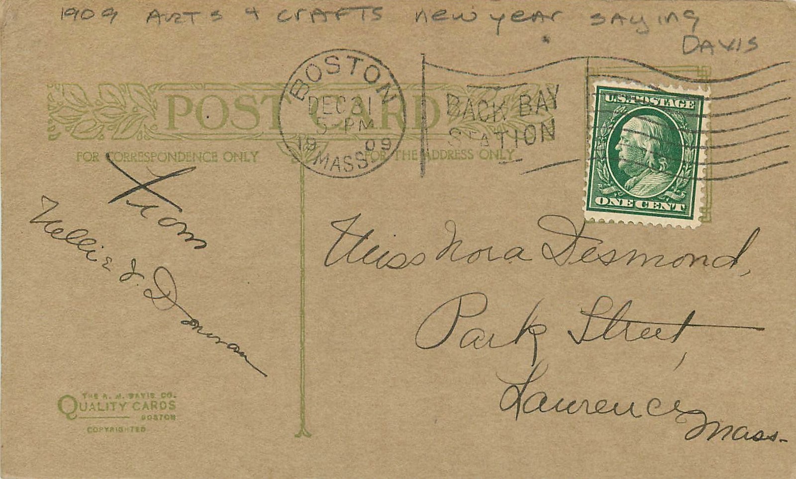 1909 Arts & Crafts New Year Saying Postcard 25-10573
