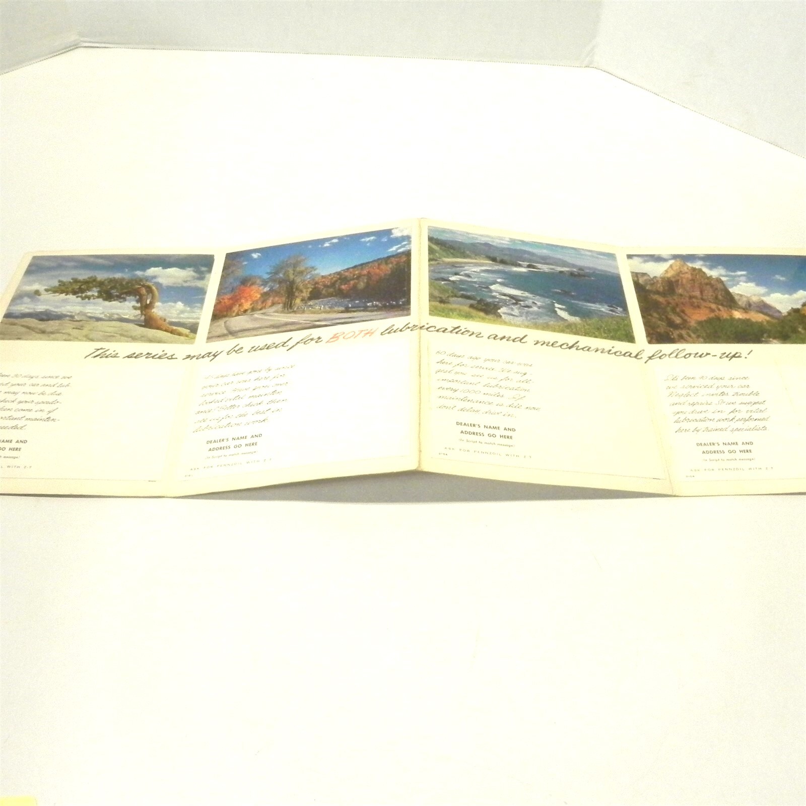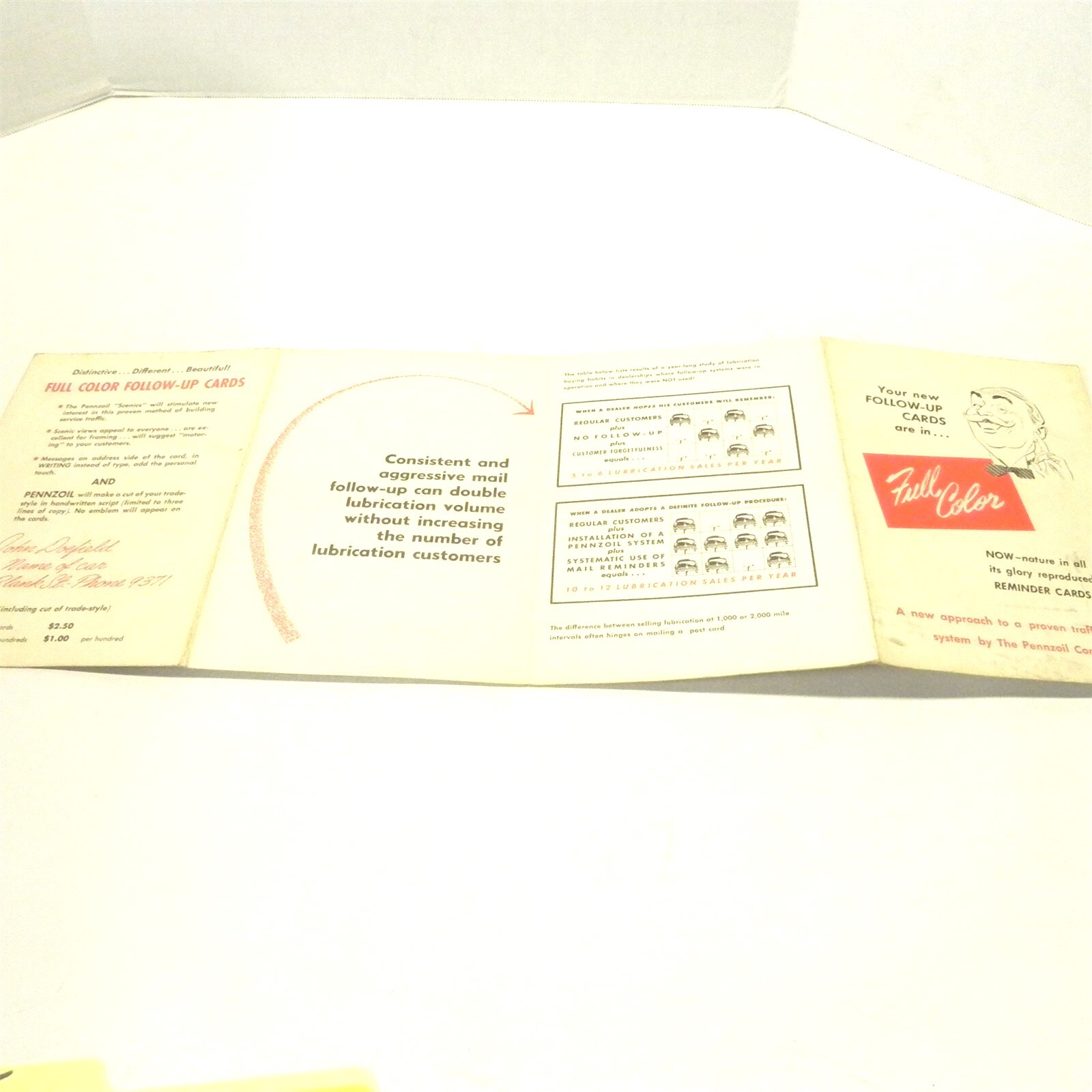 1950's PENNSOIL CAR DEALER GIVE AWAY PROMO POSTCARD ORDER DISPLAY VINTAGE FOLD