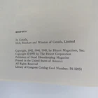 This is a copyright 1955 "Good Housekeeping Cook Book" edited by Dorothy B. Marsh. The hardcover book has the original dust jacket which says the book is "Brand New from Cover To Cover" and has "more than 3000 kitchen tested recipes". The dust jacket has some edge tears and wear. A few pages in the book have some discolouration from the previous owner using bits of newspaper as bookmarks. I have left the one "bookmark" as it has a recipe on it. There are no kitchen stains or writing inside the book. The title page does have a spine crack along the full length of the spine, but the spine is still secure and there are no loose pages. There are 768 pages in the book with over 60 index pages, so it is easy to find whatever recipe you are looking for. The book measures approximately 9.25 inches high by 7.5 inches wide by 1.5 inches thick. Please see pictures for actual condition. Please contact me with any questions. When possible I can combine shipping on multiple purchases. Please wait for a revised invoice before paying. Check out my other cool items!