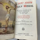This vintage 1956 Saint Joseph Daily Missal is a beautiful addition to any collection. The leather binding and English language make it a timeless piece for those interested in religion and spirituality. The Catholic Book Publishing Co is the well-known publisher of this beloved prayer book. The topics of religion and spirituality are explored through the prayers and readings included in the book. This item falls under the categories of "Books & Magazines" and "Antiquarian & Collectible". It is a must-have for any collector or religious enthusiast.