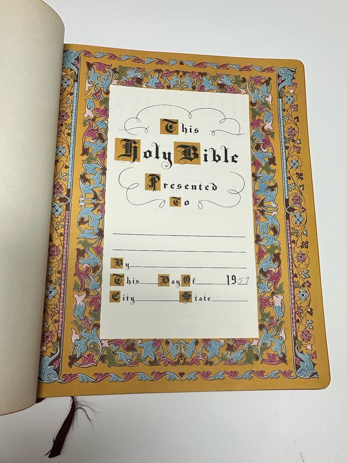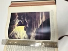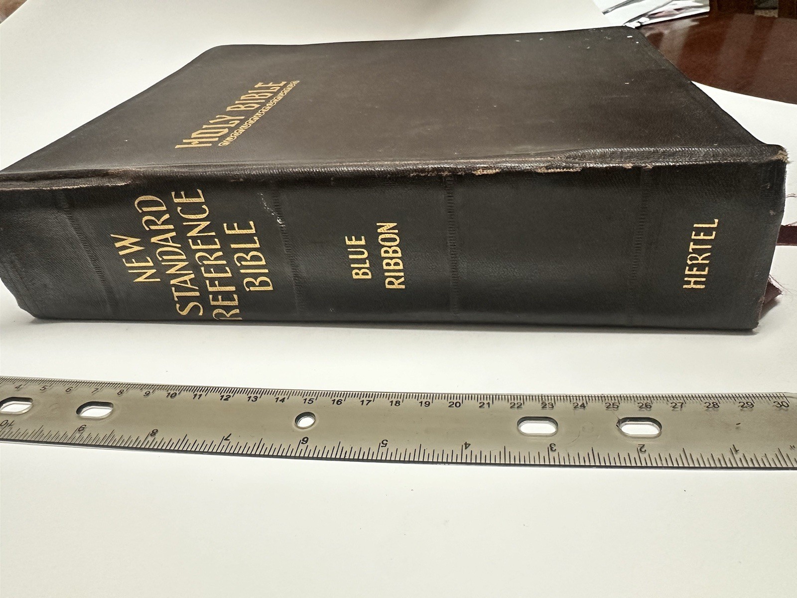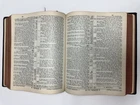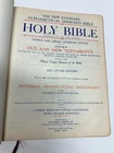 This is a rare and collectible 1927 edition of the New Standard Reference Bible, Blue Ribbon Edition, published by Hertel. The Bible is in good vintage condition with signs of age and use, as shown in the photos. The leather cover is intact with some edge wear, and the gold-stamped lettering remains clear and elegant. Key Features: • Published in 1927 • New Standard Reference Bible – Blue Ribbon Edition • Contains colorful maps, illustrations, and an Index to Scripture Atlas • Decorative presentation page • Includes original ribbon marker • Approximate dimensions: 11.5” x 8.5” x 3” (see ruler in photo for scale) This would make a beautiful addition to any vintage book collection, religious study library, or antique decor. Condition: Used – Good vintage condition. Binding is strong, pages are complete and legible. Some minor wear on the cover corners and edges. Please see photos for full details. Ships securely with care.